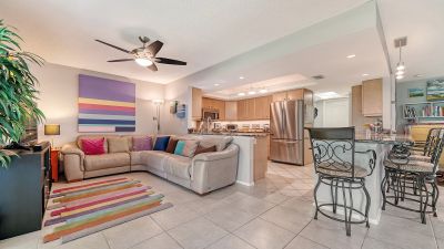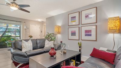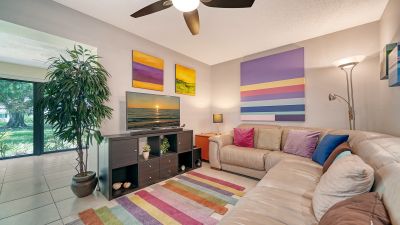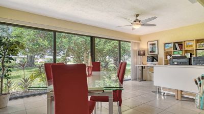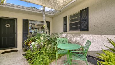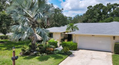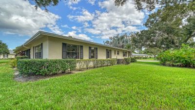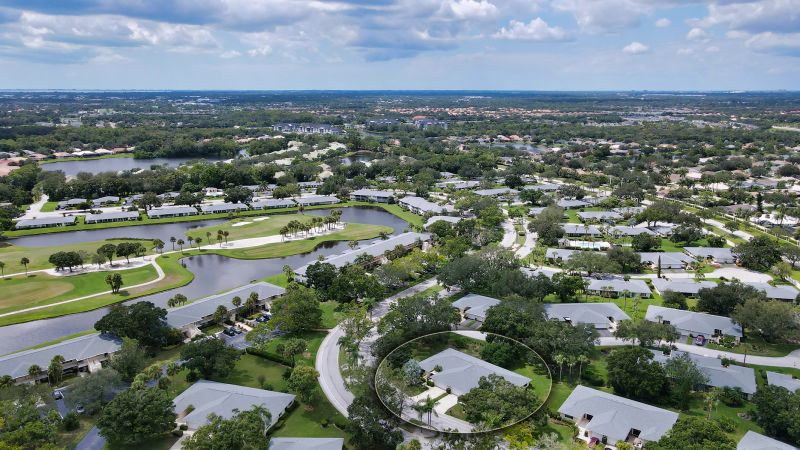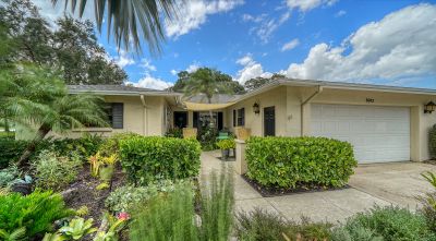 This villa in the active lifestyle community of Palm Aire is truly special. An end unit surrounded on 3 sides by greenspace and lush landscaping, providing wonderful privacy and a serene setting. It is one of the rare units in the small Fairway Bend community that is greater than 2,000 sq ft, that has 3 full bedrooms and a garage not just for 2 cars but also for a golf cart! A great home for entertaining family and friends. The large kitchen is open to both the living and family room areas with a 10 foot long breakfast bar. As you walk in the front door, your eyes will immediately be drawn to the wide-open view of the backyard. The entire wall of floor-to-ceiling glass all along the far side of the huge 30' x 11' Florida Room visually brings the outdoors in. It creates the impression that the interior space is endless. Yes, this home is very special. It is worth your time. Come and see! As you will see in the pictures, the kitchen has been nicely updated. Ask to see how the very clever corner base cabinets work, taking full advantage of all the storage space available. The master and guest bedrooms are at opposite ends of the home offering wonderful privacy and both have ensuite baths. The 3rd bedroom is adjacent to the master and separated by pocket doors so you can either incorporate it as a sitting area or nursery off the master or close it off as a separate 3rd bedroom or office. As you approach the home, you'll be charmed as you walk by the fountain in the beautifully landscaped extended front court yard. It even has its own separate irrigation system for easy maintenance and is shaded with a contemporary style sail awning. This home has even been pre-wired for easy connection to a whole house generator. The Fairway Bend Association, as a maintenance-free community, takes care of and is responsible for both the grounds and the building exterior. In fact, they just recently replaced the roof on this villa! Fairway Bend is part of the larger, delightful and active Palm Aire community. Country club memberships are reasonable and optional, offering golf, tennis, pickleball, fitness, fine dining and lots of social activities. Visit PalmAire.net for more info. Fairway Bend has its own separate heated community pool that is just a 1/10 mile walk from this home. The community is ideally located with easy access to I-75, the incredible University Town Center and surrounding shopping areas, the Sarasota international airport, downtown Sarasota, and our award winning beaches.