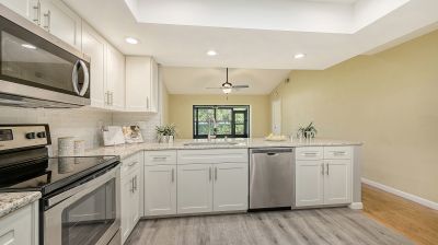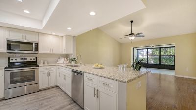 Back on the market...Buyer financing fell through. Nestled in a tranquil cul-de-sac, this 2-bedroom 2 bath villa located in central Sarasota's Center Gate community is a true gem. Offering a peaceful and serene retreat without sacrificing proximity to shopping, dining, and pristine beaches. With new kitchen and bathroom upgrades in 2020, spacious interiors, and an inviting outdoor living space, it's a haven of comfort and convenience. Enjoy the modern elegance of newly renovated kitchen with LED lighting, soft close cabinets, granite counters with large island and bathrooms with sleek fixtures and contemporary design. Abundant natural light fills the open living areas, making it feel both spacious and welcoming. Step into your private outdoor haven, perfect for gardening, leisurely afternoons and al fresco dining. The enclosed Florida room is the perfect addition with nearly 200 square feet of living space. (not reflected in the tax record square footage) Brand new roof just this month and A/C replaced in 2020. The community pool, located just outside your air-conditioned Florida room, surrounded by lush landscaping, allowing for intimate privacy, while giving you the feel of your own private pool. Center Gate 6 is non-age restrictive and completely maintenance free..... so bring the family and the toys because the 2-car garage has ample space for it all. This property is perfect for those seeking a peaceful home while staying close to the amenities and recreation that coastal living offers.
