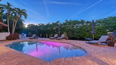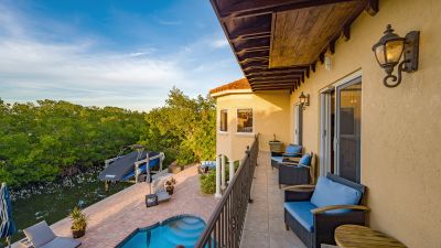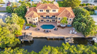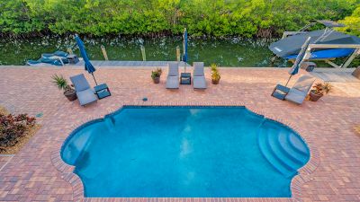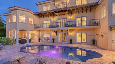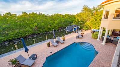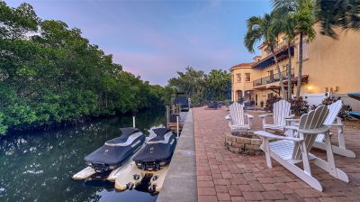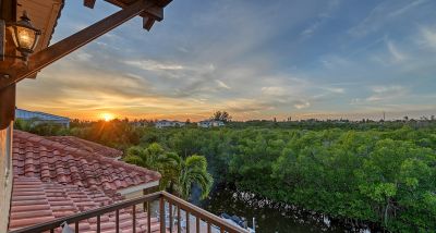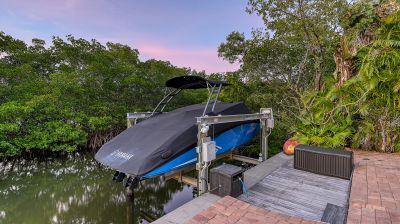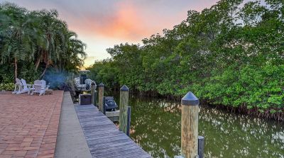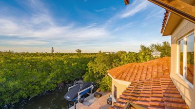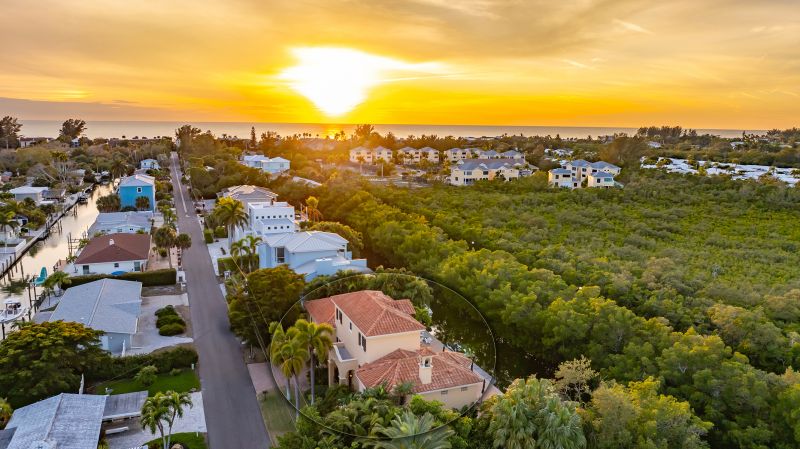 **The Seller requests NO SOLICITATION COMMUNICATIONS of any kind. Listing Withdrawn.** Here's your opportunity to live in an exclusive canal front oasis where you can enjoy outdoor living with no neighbors in your back yard. This spectacular custom home was conceived and constructed for the builder's personal use and the quality is second to none, including steel reinforced concrete block construction, barrel tile roof, Anderson impact windows and sliding doors, gorgeous Sapele wood flooring, oversized garage, and even blueprints for a future elevator in a pre-measured stack currently serving as additional closet space. With 4 bedrooms, 3 full baths and 2 half baths, this home has plenty of room for family and visitors alike. The primary suite enjoys its own floor with a grand double door entrance, updated bathroom, walk-in closet, upscale seagrass carpeting and it's own exclusive balcony with unobstructed views to stunning sunsets and the intercoastal waterway. Almost every room on the main living level has fabulous water views too! The privacy afforded by the mangrove preserve cannot be oversold. It's such a serene environment for lounging by the saltwater pool, dining al fresco or simply relaxing on one of the balconies. IN ADDITION to the home's 2,641 sq. ft., THE FINISHED FIRST FLOOR "NON-CONFORMING" BONUS ROOM OFFERS ANOTHER 800-1,000 SQ. FT OF A/C LIVING SPACE with impact sliding glass door access to the summer kitchen, a covered patio and expansive paver pool deck, heated pool, dock, etc. Your dock is outfitted with IPE decking, electric and water hookups, a 10,000 lb. lift and a floating dock for jet skis. With no bridges, you'll find yourself on the intercoastal waterway in less than 5 minutes. Deeded private beach access is just a short stroll up the road to the pristine shores of the Gulf of Mexico for getting in your steps, swimming, beachcombing and a front row seat to mesmerizing sunsets! If you're looking for a quality home that checks all of the boxes for an island lifestyle, this gem is for you!