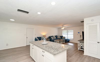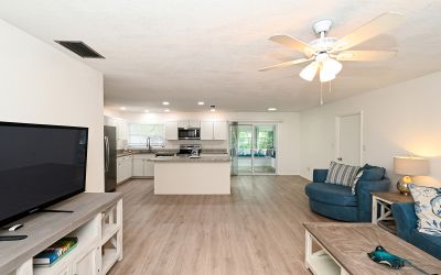 Renovated top to bottom since 2020 including a new roof, this serenely modern and rare four bedroom, two bathroom ranch packs a punch in comfort & convenience. Treat yourself to a fresh start when you buy this sleek and surprisingly fun home with plenty of space for a large family with great proximity to Downtown Bradenton, Anna Maria Island beaches, and SRQ Airport. Don't forget to listen for the ice cream truck that adds to the nostalgic charm of this warm and friendly neighborhood close to it all. Imagine what a joy cooking for a crowd of loved ones can be in your new kitchen with stainless steel appliances, granite-topped island, and a large window above the sink looking out into the butterfly-filled backyard. Love to garden? You'll swoon when you see all the garden beds ready for planting. Your fenced backyard has another patio space for grilling and enough room for a pool. Make the most of every sunrise and sunset from the South-facing Florida Room, which is the perfect space for working out, laughing over brunch with friends, or simply relaxing with a good book. Just beyond the laundry room filled with cabinets and extra storage space is where you'll discover the impressive theater (4th bedroom) with another enormous walk-in closet. Speaking of storage, there is even more still waiting out back in the two gardening sheds. All the furniture can be included to make this a truly turn-key home or a very lucrative investment/rental. So book your showing soon - this one won't last long!