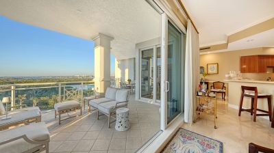 Set high above the sand on the seventh floor of Orchid Beach Club, this executive Lido Key beach residence showcases sweeping Gulf-to-bay and downtown Sarasota views the moment you step inside. Designed for elevated coastal living, the nearly 3,000-square-foot layout offers three bedrooms, three full baths, private elevator access, turnkey furnishings option available, and multiple terraces that create a true indoor-outdoor lifestyle.A residents-only elevator opens directly into your private lobby, where double iron filigree doors reveal a sophisticated interior filled with natural light. High cove ceilings with inset lighting, custom millwork, wood paneling, motorized window treatments, and thoughtfully updated finishes establish a sense of modern elegance throughout the home. Walls of impact glass capture unobstructed Gulf, bay, and city vistas, enhancing every living space.At the heart of the residence, the gourmet kitchen blends design with function, offering quartz countertops, sleek cabinetry, an island with seating, breakfast bar, and top-tier Bosch and Dacor appliances--including a six-burner gas range and warming drawer. The kitchen flows effortlessly into the great room and dining area, creating an ideal setting for hosting or relaxed everyday living.The Gulf-front primary suite serves as a peaceful retreat, complete with terrace access, two walk-in closets, and a beautifully renovated bath with marble-inspired finishes, dual vanities, soaking tub, and large shower. Two private guest suites--positioned in a split layout--provide comfortable accommodations for visitors, including one with terrace access and another with its own secluded balcony.Three terraces extend the living experience outdoors. The expansive bay-facing terrace offers a full summer kitchen with new (2024) built-in gas grill, large dining area, and generous seating space--perfect for sunset dinners or morning coffee overlooking the water. The Gulf-facing terrace is reserved for the primary suite and third bedroom, while the second guest suite enjoys its own private balcony.Orchid Beach Club is an exclusive Gulf-front community of only 54 residences, known for concierge-level service and resort-style amenities. Residents enjoy a secure building, 24-hour gated entrance, attentive concierge staff, and a beautifully appointed clubhouse with social room, library, billiards, catering kitchen, and lounge. The wellness center includes a fitness facility, sauna, spa room, and massage services. Outdoors, the Gulf-side pool and spa are surrounded by a spacious sun deck, with direct access to a private stretch of Lido Beach's soft sands and turquoise water.Ideally situated near St. Armands Circle, Longboat Key, and downtown Sarasota, the location offers immediate access to fine dining, boutique shopping, theaters, galleries, boating marinas, and cultural venues including the Van Wezel Performing Arts Hall and Sarasota Opera House. With world-class amenities, coastal scenery, and a premier waterfront address, this Orchid Beach Club residence delivers the best of Lido Key living.