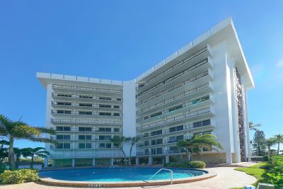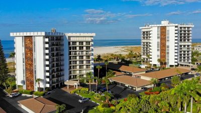 ST. ARMANDS TOWERS SOUTH - Located across the street from the crystal blue waters of Lido Beach, and two short blocks from St. Armands Circle, this furnished fifth-floor condo is the epitome of coastal chic with 1,275 sq ft of interior living space in an open floor plan, with two bedrooms and two full bathrooms. The east-facing residence extends a refined yet relaxing living experience with style that includes natural textures, a palette of coastal colors, and generous sliding glass doors from the living room and both bedrooms to the spacious balcony, creating an open airy feel throughout the space. Thoughtful updates such as ceiling fans and oversized tile floors are a perfect complement to the Florida lifestyle. The kitchen is open to the spacious living room and dining room, and is equipped with recessed lighting, stone counters, an undermount sink, beautiful cabinetry with plenty of storage, and stainless appliances. The primary bedroom includes an en suite bathroom and generous walk-in closet, and the additional bedroom is perfect for a home office, or an extra room for guests. There is a storage closet in the unit, and one covered carport space is included, with a private storage locker for beach toys. St Armands Tower South is a well-managed, pet friendly building (up to 25 lbs), with amenities that include a heated pool with Gulf views, beautifully updated lobby, community room with kitchen, library, and fitness room, with a laundry room on each floor, onsite management and maintenance supervisor. When you’re not at the beach, enjoy the upscale European ambiance on St. Armands Circle with art galleries, retail therapy, relaxing spa services, gourmet & casual sidewalk cafes, a vibrant social scene, a pedestrian-friendly promenade, and an array of local events just around the corner. The iconic Lido Key location is also just 3 miles from downtown Sarasota, so you can truly experience the metropolitan sophistication of Florida’s “Cultural Coast” from an elegant beachside locale at St. Armands Towers South.