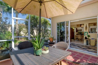 This seldom available single-story home is in the maintenance-free community of Mira Lago of Palmer Ranch. The new buyer has a unique opportunity to have a two-bedroom, two-bath home, with a new barrel tile roof with 15-year warranty installed June 2025 and a new water heater, Hardwood floors and 12-foot ceilings highlight this special home with a huge outdoor living space. Mira Lago is a gated community at northwest corner of Palmer Ranch. The low association fees cover painting the exterior every eight years with a palette of five color choices. The association provides grass cutting and irrigation, mulching, power washing the driveways, sidewalks and the roofs, pest control on the interior and exterior, and Frontier basic cable service of 120 stations with reduced viewing packages. Live just outside of two trailheads to Legacy Trail, near Costco, Gulf Gate, the white sand beaches of Siesta Key and near downtown Sarasota with all the arts and culture, and central to the historical community and downtown, and Venice.