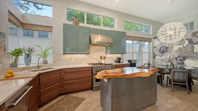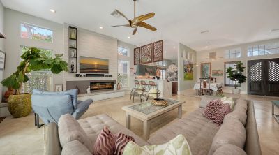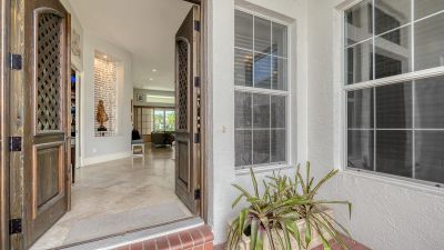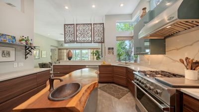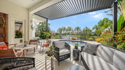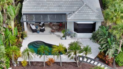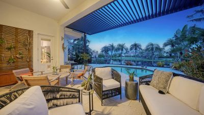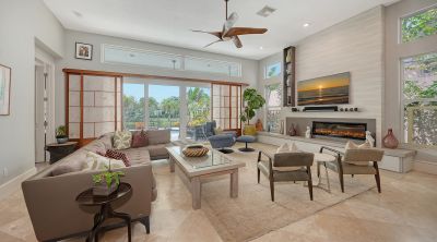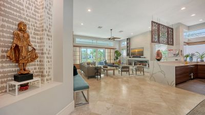 Welcome to an extraordinary transformation where sophisticated artistry meets modern urban luxury, elevating the serene prestige of Queens Harbour on Longboat Key. This impeccably reimagined 3-bedroom, 2-bath residence offers rare ambiance and refinement, seamlessly merging interior elegance with outdoor serenity. Custom shoji doors envelop hurricane-impact sliders, creating a glowing, intimate setting--perfect for alfresco evenings or savoring the sculptural stone fireplace within the great room. Soaring ceilings and curated niches showcase fine art and architectural detail, infusing the home with stylish warmth. Creamy textures--from hand-selected travertine underfoot to cascading quartz waterfall countertops--form a soothing, sophisticated backdrop. The chef-inspired kitchen is both beautiful and highly functional. An exotic wood island, hammered copper sink, and premium DCS stainless gas cooktop with built-in ovens evoke culinary artistry. Designer lighting illuminates the quartz surfaces, while the chic breakfast area--with its bespoke wall print--suggests an upscale Manhattan suite. Fisher & Paykel dishwasher drawers elevate entertaining, and the expansive breakfast bar invites guests to gather in effortless style. The luminous open plan flows to a formal dining room ideal for gracious hosting, all connected to the great room and tranquil Zen garden beyond. Oversized sliders dissolve the boundary between indoors and the lush backyard oasis, framing the serene pool like a living painting. The owners' suite is a sanctuary with generous proportions, a walk-in closet, a peaceful lounge/workspace, and private pool access overlooking the gentle pond. The primary bath is a masterpiece--dual vanities, refined finishes, and a two-person walk-in shower enclosed in seamless glass, creating a spa-like haven. The second ensuite bedroom is bathed in sunlight from a sweeping wall of windows and offers private bath access. Luxurious quartz, tile, and high-end fixtures provide understated refinement, with a spacious closet and nearby linen storage for guests. The third bedroom/den, currently styled as a chic office, easily converts to a guest suite. Custom built-ins set a sophisticated tone--ideal for unwinding after days at the nearby beaches. From its intricately carved double doors to its elevated fixtures and finishes, this home radiates warmth, craftsmanship, and refined coastal luxury. A complete 2018 renovation ensures comfort and peace of mind--move right in and begin living the easy, distinguished lifestyle that defines Queens Harbour and Longboat Key. Residents enjoy access to the Bay Isles Beach Club with BBQs, volleyball, covered pavilions, a private kitchen, and storage--perfect for sunset gatherings. Optional memberships at the renowned Longboat Key Club offer premier pickleball, tennis, 45 holes of championship golf, a deep-water marina, fine dining, spa, fitness center, and 10 miles of white-sand beach. Come live the dream.