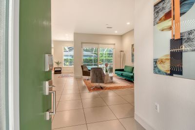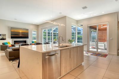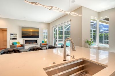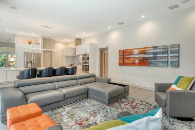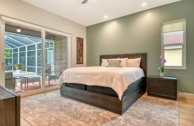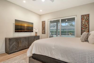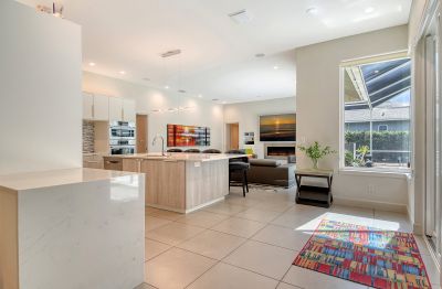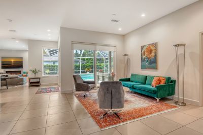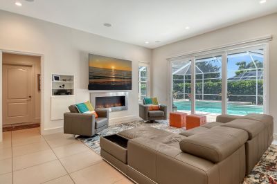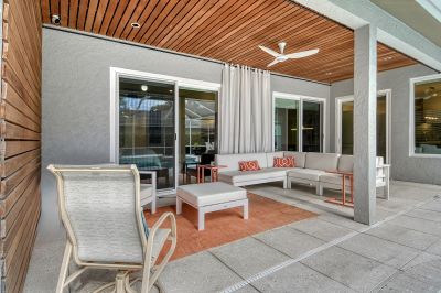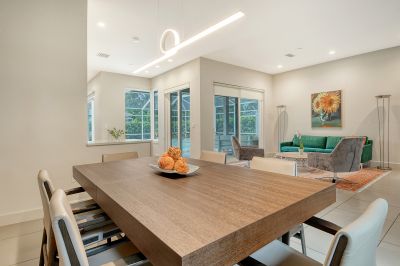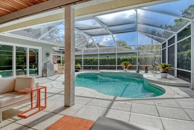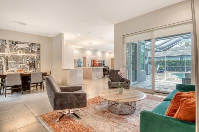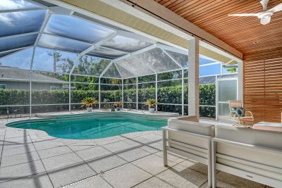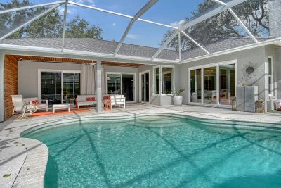 Set on a beautiful corner lot shaded by mature trees, this beautifully updated 4-bedroom + office residence offers a refined blend of contemporary style and timeless comfort in one of Sarasota's most convenient central locations. Smart updates include a 2024 roof, 2021 HVAC and ductwork, 2025 water heater, 2021/22 impact windows/doors/garage door, 2024 lanai screen and more...see the attached upgrade sheet for a complete list. The interior of the home reveals a flowing floor plan designed for both everyday living and gracious entertaining. The kitchen is a showcase of modern design, featuring Bosch stainless appliances including 2024 refrigerator, quartz countertops, pull-outs, and a striking waterfall-edge center island with integrated storage, and a wine refrigerator. This space opens seamlessly to the family room, where a sleek built-in electric fireplace creates an atmosphere of sophistication and warmth. Finishes are impressive throughout: 24-inch large-format tile brings a polished look to the main living areas, while 7-inch wide-plank white oak flooring adds understated richness to the bedrooms. Each bathroom has been transformed into a spa-like retreat, with floating vanities, frameless glass showers, and carefully selected designer tile. The primary suite is especially indulgent, featuring custom modern closet detailing and a showpiece bath with a doorless walk-in shower, floating vanity, and built-in bench. Designer lighting and freshly painted interiors heighten the sense of style and quality throughout. Walls of glass invite views of the outdoor living spaces, where a screened lanai with cypress ceiling overlooks the expansive pool and deck. The pool glistens as the centerpiece of a backyard designed for both relaxation and entertaining, enhanced by professional landscape lighting, privacy hedge, gravel walkway, fencing, and a full irrigation system. Located in a top-rated school district and just minutes from Sarasota's world-class beaches, retail, dining, and cultural attractions, this residence offers a rare opportunity to enjoy a home where contemporary design, thoughtful updates, and a touch of everyday luxury come together seamlessly.