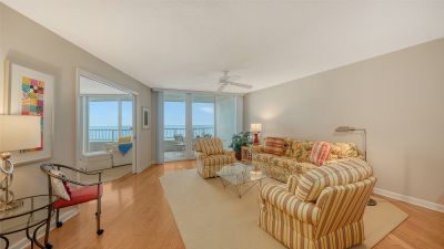Experience the ultimate in Gulf-front living from this beautifully positioned 2-bedroom, 2-bath residence in the sought-after Beaches condominium, perfectly located behind the gates of the Longboat Key Club. Wake up to unobstructed, panoramic views of the Gulf of Mexico from both bedrooms in one of the most private floor plans in the building with no neighboring balconies in sight. Enjoy peace of mind with new hurricane-impact windows and doors, recently completed as part of a building-wide upgrade. Beaches offers luxury amenities including a full-time door attendant, beachfront pool and spa, fitness center, tennis courts, on-site management, and secured elevated under-building parking. Just moments from the new St. Regis Resort, world-class golf and tennis, and the dining and shopping of St. Armands Circle, this is beachfront living at its best.