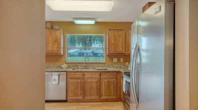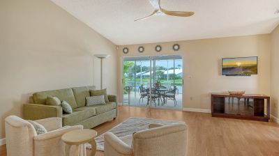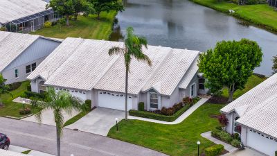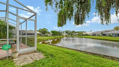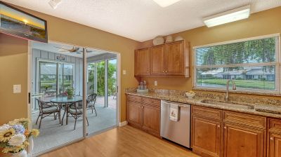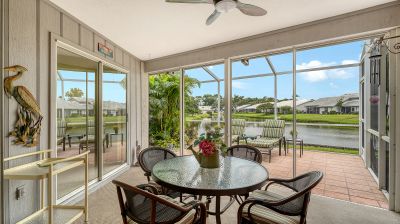 CRESTWOOD VILLAS!! GREAT LOCATION!! Lovely Re-modeled 3BR/2BA turn-key furnished, two car garage end unit with beautiful lake view in a maintenance free community. This home features an open floor plan, Pergo wood plank flooring, with lots of great natural lighting from the end unit windows facing west and the sliding glass doors out to the porch plus a large lanai offering you great sunrise and nature views looking out to a large lake. All the units in Crestwood Villas are getting new roofs as the contract is signed and paid in full. You will find impressive granite counter tops in the kitchen and in the guest bath. The generously sized kitchen features, natural wood color cabinets, a stainless-steel appliance package, pantry closet, and eat-in area. There are three sliding glass doors allowing direct and convenient step out to your covered, screened in porch from the Great Room and the Kitchen. This four-season area includes a new dining table plus four chairs, a buffet on wheels, plus two cushioned chaises all on this private lanai with your tropical Areka palms. The vaulted ceiling in the Great Room allows for optimal space and features a couch, two comfortable swivel chairs, a wall buffet table with bar along with a low entertainment center all opening to the Dining Room that features a cedar wood 4-8 person dining room table (with two leaf's) including 4 chairs and a matching oversized buffet with storage for China. Six Ceiling Fans are featured throughout the home and the villa has a security system in place. The Primary oversized bedroom suite includes a king-sized bed, sitting area with leather couch and a large walk-in closet. The primary bathroom has double vanities, spacious linen storage closet, and a separate private shower area. The guest bedroom features twin beds and a desk with a bookcase. The third bedroom is a flex room with a large electric lounger sofa, built-in professional desk, tv, computer space and large storage closet. The laundry room has a Speed Queen Washer and Dryer with twin cabinets above for lots of storage. The newly painted two car garage offers you lots of storage with a wall of cabinets plus a separate cabinetry and peg board. This lovely community has many amenities such as the Geo Heated Thermal pool, clubhouse and tennis and pickle ball courts. Crestwood Villas is located near a beautiful park, lots of shopping and restaurants are close by and you are just minutes to the award-winning Siesta Key Beach!! Schedule your private showing today!