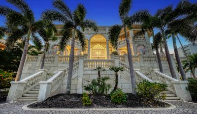 Regent's Court: The Pinnacle of Luxury on Florida's West CoastRegents Court: Where Legend Meets LuxuryBeyond the gates of the Longboat Key Club lies an estate that doesn't just live -- it performs. A dramatic masterpiece perched on Florida's west coast, this estate commands over an acre of pure beachfront with 150 feet of unspoiled Gulf frontage, where sky and water fuse in ever-changing hues at dawn and dusk.Your arrival is nothing short of cinematic: majestic wrought-iron gates part to reveal a sweeping driveway paved in artistic stone, each curve leading closer to the heart of the home. A side-entry garage, cavernous in its capacity, hides generous storage; beside it, a full-house generator promises unbroken comfort even when the world goes dark.Inside, every surface and silhouette feels sculpted for impact. Cream marble floors echo with light. Designer lighting drapes each room in mood and elegance. Premium stainless steel appliances anchor a gourmet kitchen, with a bar area that's built for both intimate soires and lavish celebrations. Across stately arches, French doors open into an office and dining space. Ascend via elevator through all four levels, each floor unveiling rooms with cathedral ceilings, balconies with sweeping views over the Gulf. The two-story library has custom woodwork. Adjacent to the large primary bedroom is the super-master bath with both tub and shower framing the Gulf in panoramic glory.On the second living level are three guest suites with private porches that render a daily spectacle -- mornings bathed in soft dawn light over the sand dunes and the Gulf, evenings lit by fading sun dancing across the waves. French doors open wide, blurring the boundary between indoors and the beach. The third living level includes an all inclusive guest quarters--your private sky-retreat. Two bedrooms, two baths, a full kitchen, a spacious living and TV room. From its large, sweeping porch, the views stretch across Sarasota Bay and the Gulf's glassy expanse. By day the Bay shimmers under sunlight, by dusk the city lights begin their soft glow. This is a space where family, friends--or guests--can escape, entertain, or simply soak in nature's most breathtaking performances.Outside is not secondary, but rather the heart of this sanctuary. Lush tropical landscaping surrounds the estate. There is a NCAA lap pool with motorized cover, a deck edged with gas torches, fire pits that flicker under the stars. There's an outdoor ice tub plus an outdoor kitchen with refrigerator and a gas grill. A special gym on the second floor is cooled to perfection, central control at your fingertips. Roll-safe shutters provide safety without sacrificing style.At every moment, this home evokes a rare elegance -- you're not just observing the sunset over the Gulf, you are enveloped by it. Minutes from Sarasota, St. Armand's Circle, Anna Maria -- yet here, time moves differently, more luxuriously.This is not just a home. This is a legacy.