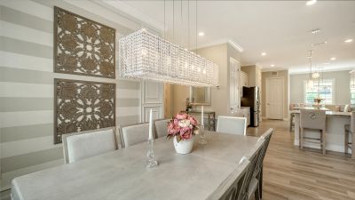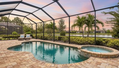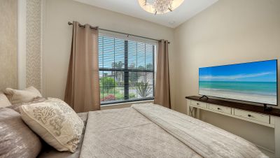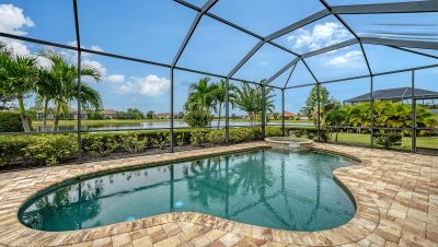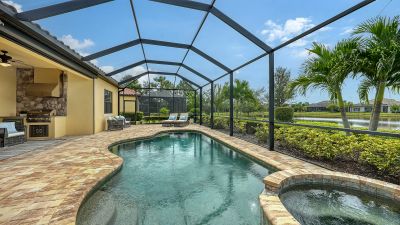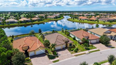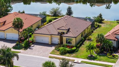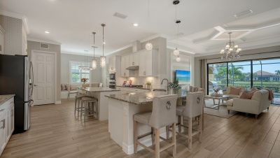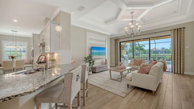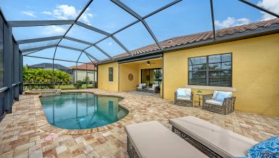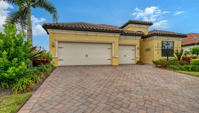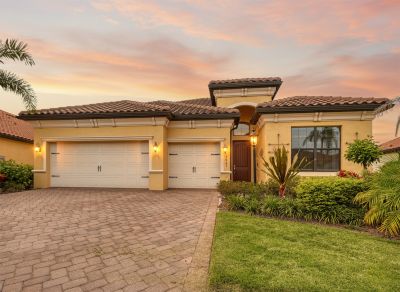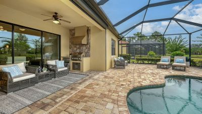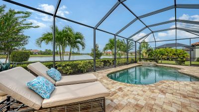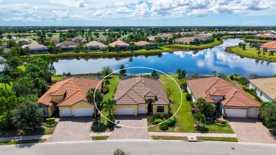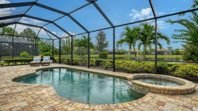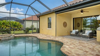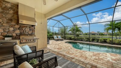 Under contract-accepting backup offers. Formerly a model home, this exquisite residence showcases hurricane impact glass windows and refined designer touches throughout, including custom molding and trim, detailed coffered ceilings, elegant lighting, and sophisticated wallpaper accents. Offered fully furnished, the home features four bedrooms, with a primary suite appointed with a soaking tub, frameless glass walk-in shower, double vanity and oversized walk-in closet. The kitchen, complete with a prep island, breakfast bar, sizable dinette space, pantry closet, gas cooktop, built-in oven and microwave, and stainless steel appliances, is complemented by an adjacent formal dining area. Designed for seamless indoor-outdoor living, sliders from the great room open to a screened lanai with an outdoor kitchen, heated pool and spa, tranquil lake views, and motorized hurricane roll-down shades for added comfort and protection. The residence also includes a spacious three-car garage, providing ample room for vehicles, storage, or a golf cart, along with a tankless water heater. Maintenance-free living enhances the appeal of this exceptional property, blending comfort and style in every detail. Residents of Country Club East enjoy gated security, The Retreat fitness and aquatic center, and convenient access to world-class shopping, dining, and recreation at Waterside Place, throughout Lakewood Ranch, and Sarasota. The community's ideal location offers a short drive to renowned Gulf Coast beaches, SRQ and Tampa airports, and top-tier medical facilities. Lakewood Ranch is recognized as the nation's number one best-selling multigenerational community, with optional membership available at Lakewood Ranch Golf and Country Club.