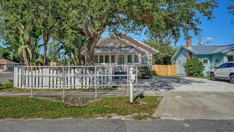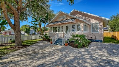 Historic charm meets modern comfort in Sarasota. This beautifully restored 1920s home, originally in Laurel Park, was relocated in 2007 with new foundation, plumbing, and electrical. A new HVAC adds peace of mind. The split plan includes 2 bedrooms, 2 baths, a gourmet kitchen with pantry, office/den, and enclosed sun porch. The primary suite features an antique stained-glass window and shoe closet. High elevation, no storm damage, and 100% rental occupancy since 2007 make it ideal for investors or homeowners. Close to Pinecraft, beaches, shopping, parks, and hospitals.