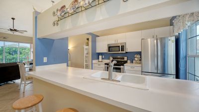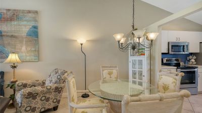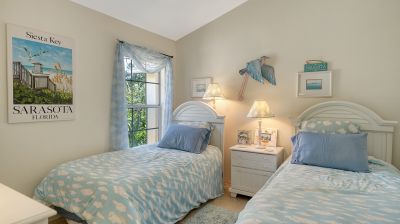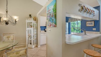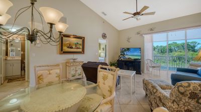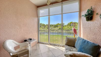 Welcome to Pinestone at Palmer Ranch....this second floor condominium has a large volume open air feel with it's cathedral ceilings in each room. By far the best deal in all of Palmer Ranch! Situated in a Gated Community with a greenbelt and westerly Lake view. High ceilings and ready for new owner. Owner says, "it's time to sell" and has priced this condominium to move. Perfect for the investor as a seasonal rental (condominiums in Pinestone are easy to rent and are limited for rentals in the first 2 years of ownership), as a vacation property or a primary residence. Pinestone at Palmer Ranch is just miles from Siesta Key and other beaches, restaurants, shopping, grocery stores and more. Pinestone amenities can not be matched in this price range. Large 'olympic' sized heated swimming pool with large deck area, tables, chairs, lounges, umbrellas, wet bar, BBQ grills and covered picnic area. Don't miss the 2 lighted tennis courts, 1/2 basketball court, hot tub/spa, gym/fitness room, billiard room, card room, 32 seat movie theater, library, onsite manager's office, pickle ball, bocci ball, firepit, cornhole, conversation area, locked bike storage and more. This is the BEST DEAL IN THIS RESORT STYLE DEVELOPMENT so don't delay!