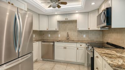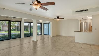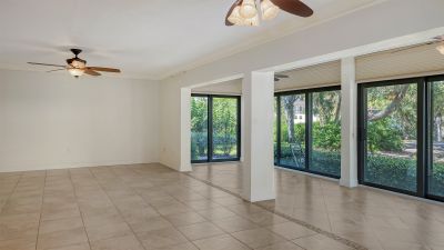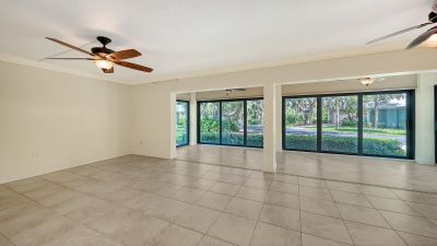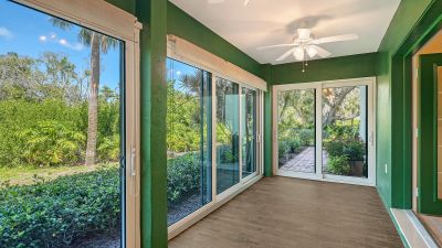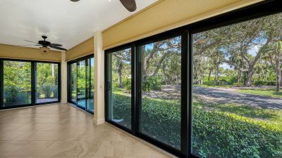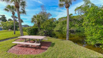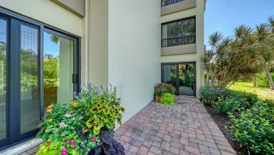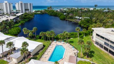 One or more photo(s) has been virtually staged. Welcome to this RARE, 2 bed/2 bath, double lanai corner residence with peaceful lagoon views in the premiere Gulf front property of Whispering Sands! Nestled in the desirable Sunset House building, this freshly painted, updated unit offers a quiet, private setting, with serene views of lush landscaping and the shimmering lagoon with its abundant fish, turtles, and aquatic life. A wonderful entry hall leads into a spacious OPEN CONCEPT floor plan, where the kitchen, living and dining areas flow together to create a wonderful, flexible gathering space. The living space has been extended into what was originally an enclosed 24' x 7' lanai, resulting in the creation of additional valuable interior living space under air, flanked on all sides with floor to ceiling sliders. Sliders open into a private, sunny brick paver patio, perfect for grilling, gardening, or simply relaxing in the surrounding natural beauty. You'll enjoy hosting friends and family in your NEW 2025 kitchen featuring granite countertops, LG stainless appliances, soft-close cabinetry, tile backsplash, breakfast bar, & tray ceiling. The primary and guest bedrooms each include a set of charming French doors that open into the tiled, screened and glassed lanai with direct views into the lagoon. Updated in 2024, both bathrooms include new granite countertops, soft close vanities & fixtures, and recessed lighting. All of the sliders in this unit are Miami Dade hurricane impact rated. 2024 HVAC system. 2025 water heater. Whispering Sands is a 55+ Gulf front community ideally situated just steps to the colorful shops & restaurants of Siesta Key Village offering two heated pools, clubhouse with catering kitchen and fitness rooms currently undergoing complete remodeling, canoe/kayak storage, beachside Tiki Hut & grills, and 800' of its own beach access on the Gulf! Thoughtfully updated, inviting, and perfectly private, this peaceful corner retreat offers the perfect blend of indoor/outdoor living on beautiful Siesta Key.