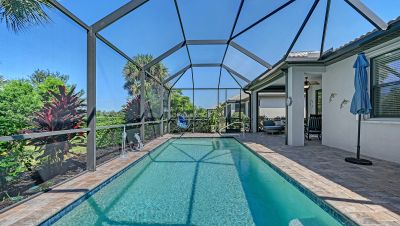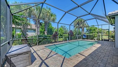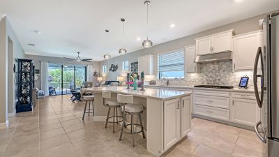 Discover comfort and elegance in this charming Martin Ray 3-bedroom 2 Bath plus den. Impeccably maintained home. The inviting atmosphere is ideal for both relaxation and entertainment. Spacious and sunlit interior. The chef's kitchen features a 5-burner gas range, white cabinetry and decorative tile back splash. Huge island with ample seating. Stainless appliances, walk in pantry, uniquely designed custom built in bar area with wine cooler. Living area with cozy ambiance. Separate dining area. The primary bedroom serves as a peaceful retreat w ensuite bathroom. Large walk-in shower, double sinks and granite counters. Two additional bedrooms provide options for family and guests. Work from home in spacious den. Paver brick lanai with ambient lighting, sparkling pool and serene lake views. Additional features include custom electric screen enclosure, all new hurricane shutters, epoxy coated 2-car garage with built in cabinetry, new paver brick driveway. Come enjoy this premier lifestyle. The community amenities include a great clubhouse with activities director, tennis, pickle ball, resort pool, fitness, dog park, playground, and much more. A prime location here in Palmer Ranch, close to shopping, fine dining, world famous beaches, the Legacy trail, and minutes to downtown. 24-hour gate with secure access.