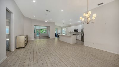 Perfectly nestled in the peaceful, maintenance-free community of Edgewater Cove - an exclusive enclave of Edgewater Village - this modernized updated 1,928-square-foot home offers a harmonious blend of comfort, contemporary living, and the allure of natural surroundings. The property is enveloped by the scenic splendor of Lake Uihlein, affording residents access to a gated community perfect for kayaking, walking, and outdoor recreation. The home features a luminous, open-concept layout encompassing three bedrooms, two renovated bathrooms, and a versatile bonus room with an array of recent updates. The third bedroom is currently configured as a den yet functions seamlessly as a third bedroom. From the moment you enter, you will notice the appealing natural tones that extend through the spacious living areas. The recently renovated kitchen is truly the focal point of the home, appointed with premium quartz countertops, soft-close cabinetry, and sleek stainless-steel appliances--designed for both function and beauty. Enjoy morning coffee in the screened-in lanai just off the charming breakfast nook. A versatile bonus room distinguished by large windows brings in abundant natural light and enhances the open, airy feel, all while offering backyard vistas. Retreat to the generously sized primary suite with brand-new flooring, a walk-in closet, and an updated en-suite bathroom featuring dual vanities, premium surfaces, and a walk-in shower. The split layout ensures privacy with two guest rooms and a second updated bath thoughtfully positioned for family or guests. Additional highlights include: a new roof (2023), new washer and dryer, high ceilings, a two-car garage, and a well-appointed laundry room with open shelving and a utility sink. Edgewater Cove residents enjoy resort-style amenities including a clubhouse, heated pool and spa, a fishing pier, a scenic gazebo and walking distance to the Lakewood Ranch Athletic club. Just minutes from Lakewood Ranch Main Street, Waterside Place, UTC Mall, top-rated golf, tennis, dining, and healthcare--this home captures the essence of Florida living - convenient and serene.