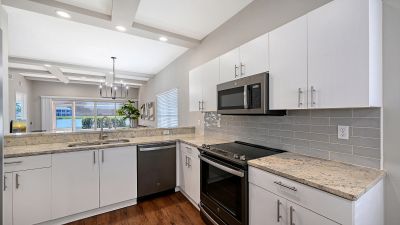 Discover Timeless Lakeside Elegance in Gated Peridia Golf & Country Club. Enter this FULLY RENOVATED 2BR/2BA corner end unit condominium at Fairway Trace at Peridia II, boasting approximately 1,200 square feet of thoughtfully designed living space--your serene retreat with direct frontage on a tranquil lake, providing captivating views from the primary suite and 14x9 screened lanai. Thoughtfully installed screens provide shade while allowing gentle sunlight and inspiring water panoramas, ideal for quiet morning coffee or evening reflections at sunset. From foundation to finish, this updated residence has been comprehensively refreshed for contemporary comfort--encompassing nearly every feature, including removal of dated popcorn ceilings for refined, smooth surfaces. Luxury vinyl plank flooring extends throughout, enhanced by new ceiling fans. At the center lies a brand new chef's kitchen with stainless-steel appliances, stone counters, and an open layout connecting to the great room and dinette--suited for entertaining. The primary suite offers a spacious walk-in closet, an en-suite bath with updated shower, new toilet, vanity, hardware, and fixtures, with lake vistas. The guest bath features renewed tub/shower, new toilet, and cabinetry. Additional enhancements include a new hot water heater, in-unit stainless steel washer and dryer, and decorative beamed ceilings with recessed lighting in the kitchen and living areas. (Furnishings available for negotiation). For hosting: Detached one-car garage, assigned parking, and private guest spaces adjacent under a shady oak tree for visitors. Envision a refined resort-style lifestyle in this gated community, offering exceptional amenities with effortless maintenance--tailored for discerning active adults who appreciate understated sophistication. The monthly HOA fee encompasses pool upkeep, cable television, and grounds care, with optional golf and club membership. Experience the 18-hole executive par-60 golf course (3,373 yards from blue tees, redesigned by Jed Azinger and Gordon Lewis with USGA-standard greens)--accommodating all abilities, walkable in ~3 hours, semi-private with GolfNow reservations and PGA lessons. Unwind at the heated pool and spa for laps or relaxation. Engage in tennis on four lighted Har-Tru courts or pickleball (rentals, leagues, clinics). Fitness center with cardio, strength options, and classes. Renovated 20,000 sq ft clubhouse: lounge, pro shop, events like Friday performances, trivia, seasonal celebrations. Dine at Terrace on the Green (lunch/dinner, Sunday brunch over 18th green, open to non-members) and tiki bar for poolside fare. Plus shuffleboard, trails, banquet hall (up to 200), landscaping, pest control. Pet-friendly (one small pet up to 35 lbs). Prime Bradenton location: 15 min to UTC Mall (Apple, Nordstrom, Cheesecake Factory), Siesta Promenade. Beaches 20-30 min (Bradenton Beach, Anna Maria, Holmes--Gulf waters, sunsets). Boating/fishing: doorstep pond, 10-min Manatee River; 25 min Sarasota Bay/Siesta Key. Downtown Sarasota 15-20 min (opera, art, dining). Hospital 10 min; I-75 to Tampa (45 min), St. Pete (30 min). Groceries <5 min (Publix, Winn-Dixie); dining nearby; airport 20 min. Flood Zone X. Fee simple, no CDD. Contact us to schedule your private viewing!