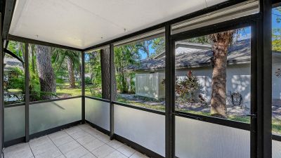 One or more photo(s) has been virtually staged. You will love Oak Forest with all the mature trees and grassy landscaped areas and its LOCATION! Just minutes to Siesta Key Beaches, Downtown shopping, restaurants, social events and theater. This community is impeccably maintained and modernized. Recent updates include roofs, exterior painting and paver driveways. The Association remains diligent regarding their finances and are fully reserved. Conveniently located directly across from the community pool and tennis courts, the entire interior of this end unit was just painted and all of the popcorn has been removed. The guest bathroom totally remodeled with a walk-in shower. New never been used stainless steel appliances: refrigerator, stove and dishwasher are included. AC was replaced in 2025. Tile flooring throughout the villa with vinyl flooring for easy maintenance in the guest bedroom. Primary bedroom has brand new carpet and offers two walk-in custom designed closets for maximum efficiency. Primary bathroom designed with dual sinks and a walk-in shower with glass doors. The Primary Bedroom, Living Room and Kitchen have sliding glass doors to access the extended private lanai. This community is not an age restricted community, is pet friendly and offers tennis, pickleball, heated pool and clubhouse. Whether you are a snow bird or a full-time resident this property checks desired boxes for your new home. No CDD fees!