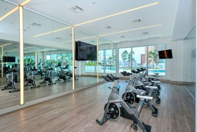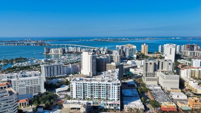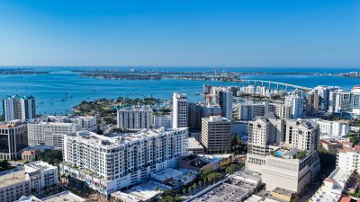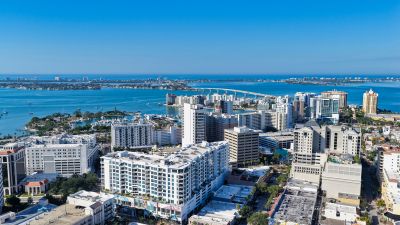 Welcome to The Mark- where it's all happening in downtown Sarasota. This incredible city-view unit is the perfect height and position in the building- facing east for sun-filled mornings, it looks directly down State Street and at the city below. The Mark is a wonderfully amenitized newer building in the core of downtown Sarasota. Just out your front door is access to the finest in dining, shopping, and entertainment that Sarasota has to offer. Inside the building you will find a true oasis- you'll be greeted by the friendly concierge, take the elevator up to you level and enjoy privacy and elegance. The amenities in the building include a heated pool and spa deck area with peek-a-boo views of the water and cityscape, outdoor seating and cabanas, a luxurious fitness center, meeting room, shared office area, grilling area, catering kitchen and much more. This unit stands out with one extra wide end parking space that was hand selected by the seller, and there is a 6x4 storage unit right across the hall. Inside this residence are lovely upgrades including tile in the main living area, automated blinds with blackout shades in the bedrooms, recessed can lighting, separate laundry room with sink, grass cloth accent walls and much more. You'll love the open floor plan with bedrooms on either side, each with its own en-suite bathroom. There is a powder room for entertaining and abundant space for sitting and hosting in the main area. There is a tucked-away office area with built-ins, custom lighting throughout, and no storm concerns with impact glass windows in all openings! The luxurious kitchen features an island with bar seating, stainless steel appliances, custom glass tile backsplash and more. The primary suite offers abundant space, dual closets, bathroom with separately enclosed walk-in shower and commode, dual vanities, and access the balcony. The lovely east facing balcony is a great retreat to sit and let the day greet you, and even see the warm glow of sunset skies over the city in the evening. This unit has been lovingly cared for its original owner- don't wait- schedule your private tour today!