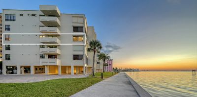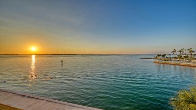 Live every day as if aboard a private yacht with sweeping, unobstructed panoramic views placing you directly above the sparkling waters of Sarasota Bay. This exceptional two-bedroom, two-bath, third-floor corner residence in the sought-after Lawrence Point community immerses you in the rhythm of the bay, from graceful sailboats and sleek yachts to playful dolphins and soaring seabirds, a living symphony of coastal life. Meticulously renovated and designed to capture every ounce of natural light, this contemporary home blends modern sophistication with relaxed waterfront living. The terrace has been thoughtfully enclosed, adding nearly 200 square feet of versatile living space while two additional private balconies offer serene retreats to savor Sarasota's signature sunsets and gentle bay breezes. Inside, imported Italian porcelain tile flows throughout an open, light-filled layout complemented by contemporary recessed lighting and designer finishes. The gourmet kitchen is a showcase of Italian cabinetry, quartz countertops, and a stone tile backsplash, combining elegant style with abundant storage and functionality. The primary suite provides a peaceful sanctuary with its own private balcony and ample room for a sitting area. The second bedroom offers flexible options complete with a Murphy bed and built-in desk, ideal for guests, a home office, or a creative retreat. Custom built-ins and generous closets throughout ensure impeccable organization and effortless living. Lawrence Point is an intimate, gated bayfront enclave renowned for its tranquil setting and some of downtown Sarasota's lowest condominium fees. Residents enjoy a heated bayfront pool, meticulously landscaped grounds, on-site management, and a prime location just moments from the cultural heart of Sarasota, the weekend Farmers Market, and the scenic John Ringling Bridge leading to St. Armands Circle and Lido Beach. Covered under-building parking adds daily convenience steps from your door. This is a rare opportunity to own a refined waterfront residence where spectacular views, elegant design, and the effortless Sarasota lifestyle converge.