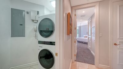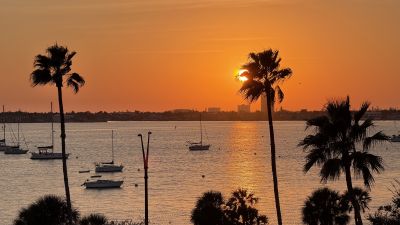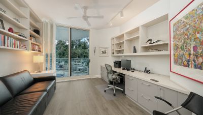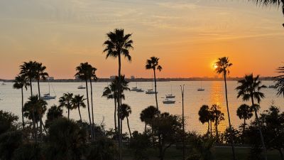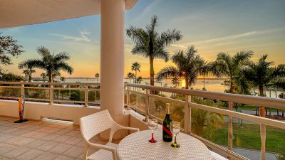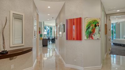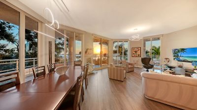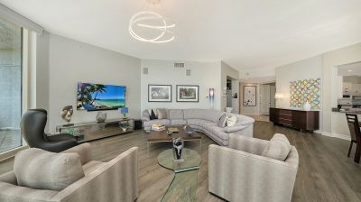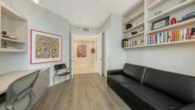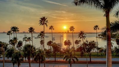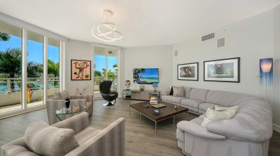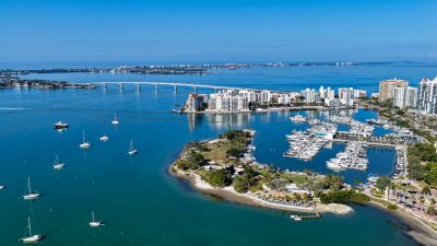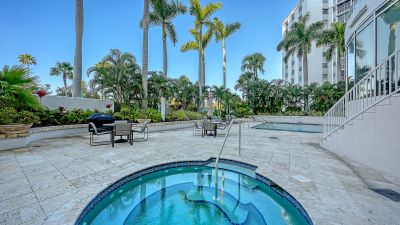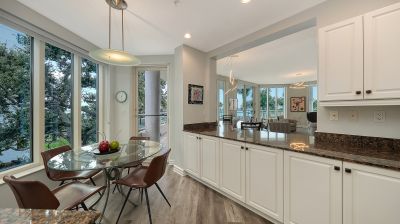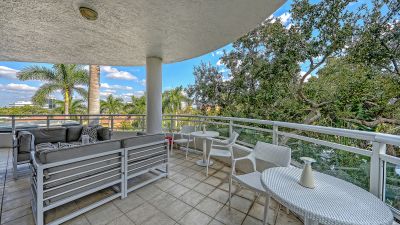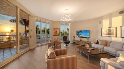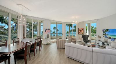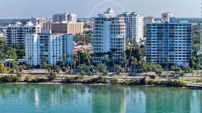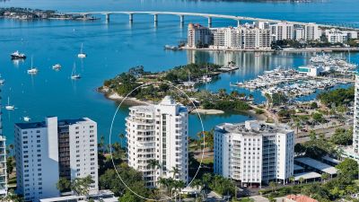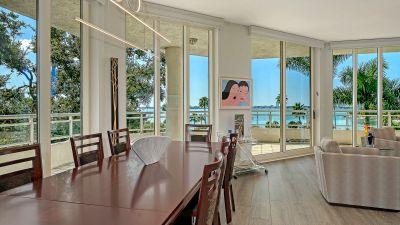 Spectacular Bay, Downtown, John Ringling Bridge views and glorious sunsets are yours in this sophisticated 3 bedroom, 3.5 bath Downtown Sarasota residence in the exclusive Tessera condominium, providing a distinguished lifestyle and easy access to all that Sarasota has to offer. Exceeding the highest standards of design, form and function, numerous updates and features offer convenience and refined style and this exceptional home blends the privacy and scale of a single-family residence with the ease and amenities of luxury condominium living. Enter the home through the beautifully appointed double-door foyer, framed by a circular tray ceiling, bespoke chandelier, and gallery-style walls ideal for art and sculpture. The walls of glass bestow best-in-class panoramic views while thoughtful finishes; warm engineered hardwood flooring, chic Mica wallpaper, designer lighting, and a fresh coastal palette set a tone of understated sophistication. Walk into the expansive main living area, where floor-to-ceiling sliders optimize Bay views and effortlessly connect to a flexible sitting area--perfect for relaxing, watching the game, or opening to the main space for larger gatherings. The elegant dining area offers stunning Bay vistas that elevate every meal. The kitchen is both functional and inviting, showcasing stone countertops, a double-door refrigerator, dual wall ovens, a large pantry, abundant cabinetry, and a convenient pass through to the dining area. Enter the sprawling primary suite, a private retreat enhanced by its own terrace and a reimagined layout providing his-and-hers bathrooms, dual vanities, two generous walk-in closets, soaking bathtub and a shared marble-and-glass surround shower. Floor-to-ceiling windows frame treetop and Bay views, creating a serene environment from sunrise to sunset. The additional bedrooms offer comfort and privacy, including a guest suite with ensuite bathroom and terrace access, and a second guest bedroom currently serving as a sophisticated office with custom wood built-ins and tailored desk. The convenient guest bath features custom wallpaper and the large laundry room features a brand-new full-size washer and dryer. Solid-core paneled doors, on trend gold hardware, new lighting from Franklin Lighting, and ample storage throughout enhance the home's effortless livability. Step onto the two sprawling wrap-around terraces--quiet, private, and designed for year-round enjoyment--ideal for dining, lounging, or entertaining among mature live oak canopies or taking in sweeping Bay views and world class sunsets. A rare, oversized private two-car garage with built-in shelving and electrical outlet, an on-floor storage room, and all building water detection system further elevate convenience. Tessera offers exceptional privacy with only two residences per floor and no shared common walls. Amenities include a heated 60-foot pool with sun deck, whirlpool spa, and state-of-the-art fitness center --all fully updated in 2024, along with the lobby and community spaces redesigned by JKL Design. The pet friendly building also offers a grilling area and bicycle storage. Located in the heart of Sarasota's downtown, just steps from Main Street, Burns Court, the Bayfront, and Selby Gardens, Tessera offers an unparalleled blend of luxury and convenience.