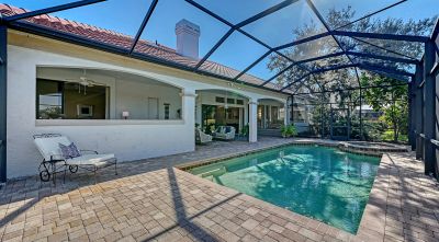 RIVER WILDERNESS PHASE I ~ PROPERTY VERY PRIVATE / WELL ELEVATED / BUILT: Presenting the "River Wilderness" Waterfront Community Phase I (a development on the Manatee River that connects with the Inter-Coastal Waterway & Gulf of Mexico) ~ Updated Photos / Drone Work Coming Soon ~ A gated golf / tennis / boating club development ~ This particular property @ 2909 Old Orchard Lane boasts the following features that are not limited to: Very open floor plan ~ 4 bedrooms (or office) & 3 baths with heated pool & spa ~ Spacious open living areas throughout ~ A ranch style design providing single story living ~ Wood burning fireplace ~ Oversized garage ~ Newer Roof ~ Separate garage opening for golf cart ~ The home / property is naturally elevated & very private (cul de sac - interior lot) ~ Golf course views (8th hole green in the distance - backyard very private) ~ Vaulted ceilings ~ Circular drive ~ Covered "large" lanai (840 sf+) that allows for open indoor / outdoor entertaining - living ~ South / Southwest facing backyard ensuring sunsets and great sunlight / warmth during winter months ~ Mature landscaping ~ A community boat ramp & parking ~ Phase I has lower HOA fees versus other community sections ~ Bring your update plans to this perfectly laid out spacious home / property on .43 very private acres and make the property the home you have been searching for. Currently the "Club @ River Wilderness" (golf / tennis) can be joined for < $600.00 monthly + cart fees with no initiation in 2024. Ready for your individual calls and subsequent showings! Original building plans are available!