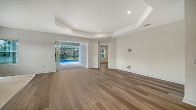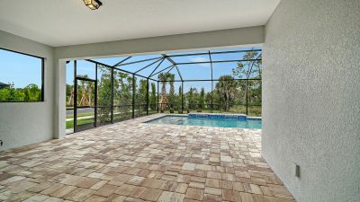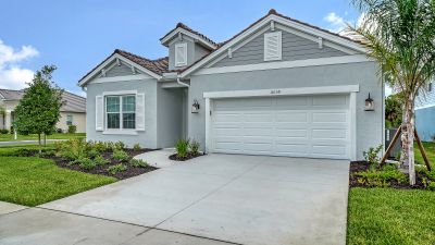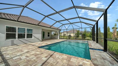 Stunning Triumph floorplan featuring 4 bedrooms, 3 bathrooms, a den, and a 2-car garage. Situated on a desirable corner lot, this pool home offers an east-facing backyard that welcomes beautiful morning sunlight through tri-pocket sliders into the open-concept living area. The coastal-inspired exterior complements the light and bright outdoor space, showcasing an almost 8,000-gallon pool with bubbler features. The lanai is pre-plumbed for a future outdoor kitchen, making it ideal for entertaining. Enjoy full access to resort-style community amenities and the best of Sarasota living.
