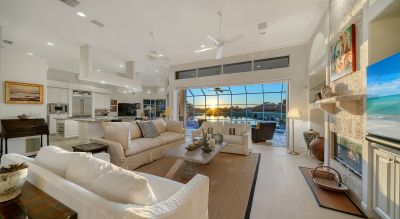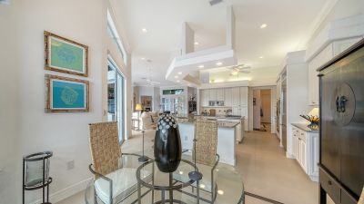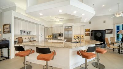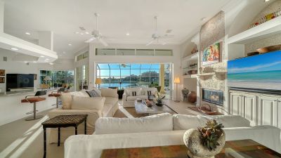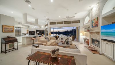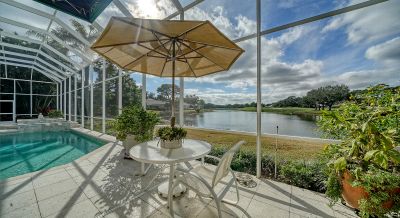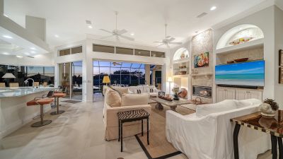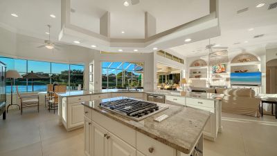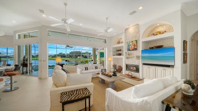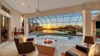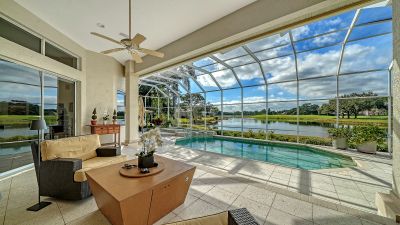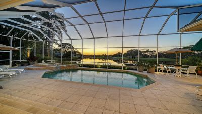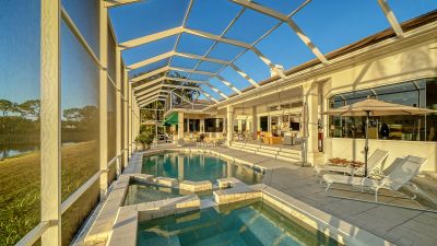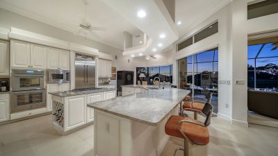 This beautiful John Cannon home has arguably the best water views in the whole of University Park! Boasting 3 bedrooms, 3 baths + den, a 3-car side-return garage, and a huge pool deck, this 3,100-square-foot home is set on 0.4 acre of lushly landscaped property against a backdrop of expansive west-facing lake and golf course views. The home has been fastidiously maintained and beautifully updated. The split-bed floor one-story plan is anchored by a stunning living area with volume ceilings, a striking coral-stone fireplace surround, built-in shelving, and pocket sliders to a huge screened terrace with a sparkling pool and jaw-dropping water views. The primary suite has a large bedroom and spacious seating area overlooking the pool and lake, two walk-in closets, and a spacious bathroom with quartz cabinetry and a vanity desk. The kitchen was remodeled in 2018 with sleek granite countertops, and the appliances were all updated in the past couple of years with Thermador and Wolf fixtures. This home boasts an abundance of natural light in every room which, combined with extra features including high ceilings, a neutral palette, plantation shutters, sunshades, built-in features, and a whole-house generator, represents incredible value in a prime location behind the gates of this sought-after country club University Park Country Club is a gated, resident-owned community offering a 27-hole Ron Garl–designed golf course, eleven lighted Har-Tru tennis courts, four pickleball courts, croquet, a fitness center, and multiple on-site dining options. Miles of tree-lined streets provide opportunities for walking and biking, and a variety of social clubs and organized activities are available to residents. Located approximately four miles from downtown Sarasota, the community provides convenient access to shopping, dining, cultural venues, healthcare, and major transportation routes. University Town Center, with its wide selection of shops, restaurants, and fitness studios, is about two miles away, along with Nathan Benderson Park and nearby Mote Marine facilities. Gulf Coast beaches, SRQ airport, the Ringling Museum, boating options, and St. Armands Circle are all within an estimated 15-minute drive.