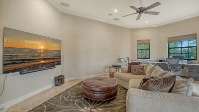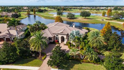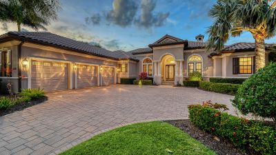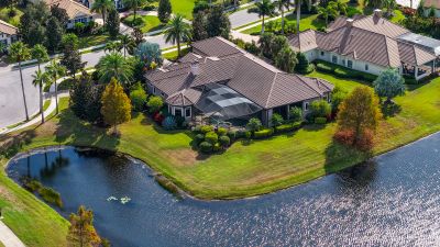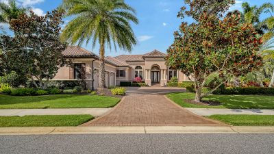 In exclusive gated Country Club East, this home sits on a.rare .63-acre cul-de-sac waterfront lot. The stunning one-story, custom-built John Cannon home offers over 4,700 square feet of beautifully designed living space with an open floor plan and soaring ceilings. Travertine flooring flows throughout most of the main living areas, including a spacious living room with fireplace, an office, separate family room, and a formal dining room. Beautifully appointed kitchen with gas cooktop, island, pantry and separate breakfast area. An oversized bonus room is perfect as a game room, music room or future movie theater. Most rooms open to views of the oversized screened lanai and pool, showcasing serene water and golf course vistas. The thoughtfully designed split bedroom plan features an expansive primary suite with a luxurious bathroom, there are 3 large guest bedrooms with 2 ensuites. Impeccably maintained with numerous upgrades, including a whole-house generator, this exceptional home reflects outstanding quality throughout. Truly a must-see to fully appreciate. This Lakewood Ranch gated community boasts 3 community pools, fitness center, walking trails, clubhouse plus social events. The Lakewood Ranch Golf and Country Club membership is optional and available with access to 4 championship 18 hole golf courses, tennis and pickleball courts plus much more.
