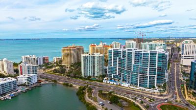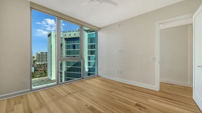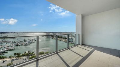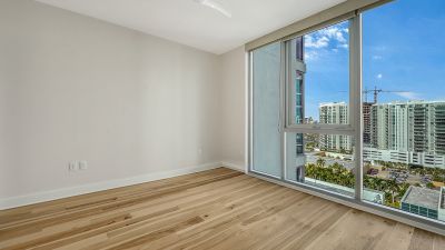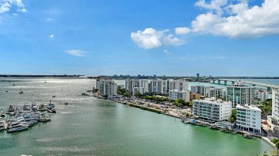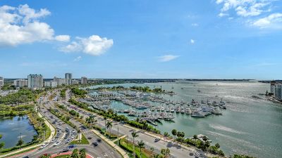 Some pictures are virtually staged. Exquisite water views from this 15th floor unit at The Vue! Ready for immediate occupancy, come and enjoy this vibrant lifestyle that downtown Sarasota has to offer. This coveted floor plan with southern exposure features floor-to-ceiling impact glass, beautiful wood floors throughout, 2 en-suite bedrooms, an office/den or a 3rd bedroom, an extra powder room, and a large laundry room. The elevator opens directly into your private foyer. As you enter, you will be amazed by the gorgeous views of Sarasota Bay, the marina, the Ringling bridge, and the Gulf of Mexico. Admire the spectacular sunsets every night from the spacious balcony that is accessible from the living room and the primary bedroom. Several great finishes include a gourmet kitchen with high-end stainless-steel appliances, granite countertops, induction cooktop, European white cabinetry, beautiful backsplash, a large island with extra sitting, and lots of storage. The primary bedroom provides a large customized walk-in closet and a second double closet. The primary bath has 2 sinks, a water closet, and a large walk-in shower. The guest suite features a bathroom with a soaking tub & shower. 2 parking spaces, and a climate control storage are included. The residents enjoy 24-hour concierge service, exclusive amenities including valet parking, sparkling lap pool & spa, an outdoor kitchen with 2 gas grills and bar, fitness center, a gorgeous club room, and a dog park with grooming station. Surrounded by restaurants, shops, theaters, the Ritz Carlton, the Westin Hotel, and the bayfront, makes The Vue the finest place to live downtown Sarasota.
