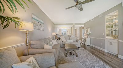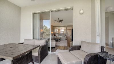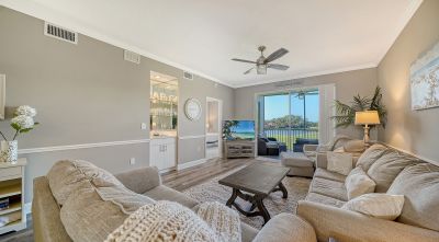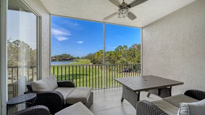 Under contract-accepting backup offers. Turnkey Furnished Terraces condo with amazing views of the 9th hole lake and fairway! Great Florida Sunsets every night. Luxury vinyl flooring throughout the living spaces, updated Kitchen with quartz counters. Crown Molding in the living room. Primary has its own slider out to the lanai, walk-in closet and an modern shower to boot! Guest quarters in the front of the home, bedrooms have carpet. The Terraces have recently updated roof, elevators and paint. Great community pool, pickleball/tennis court and outdoor grills and gathering areas to enjoy this lovely condo group. Storage closet under the carports for each owner as well. A premier member-owned country club, Stoneybrook of Sarasota, is only a short distance from Siesta Key and offers easy access to shopping and borders the Legacy Trail. Ownership in Stoneybrook Golf and Country Club includes an updated clubhouse and restaurant, Har-Tru tennis facility, well-equipped fitness center and additional club pool and spa. Nestled between Downtown Sarasota and Downtown Venice. In 2024, the Golf Course went through a complete redesign and seller has paid the 2024 assessment in full.