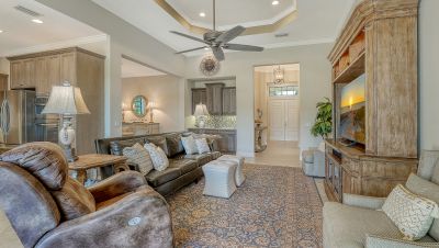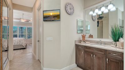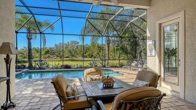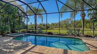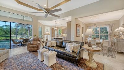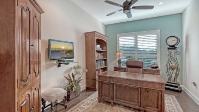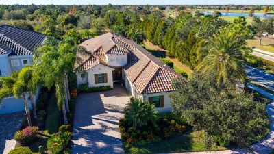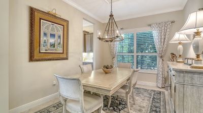 Privately positioned on an oversized homesite within the gated enclave of Country Club East, this beautifully appointed three-bedroom, 3.5-bath residence with a private office enjoys tranquil preserve views that create a serene, park-like backdrop for everyday living. The setting offers a rare sense of space and privacy while embracing the best of Florida's indoor-outdoor lifestyle.A welcoming entry through double front doors introduces a light-filled interior where a private office with double doors sits just off the foyer. The open great room is designed for both comfort and entertaining, highlighted by soaring ceilings, tray accents, and a sleek wet bar with stone countertop. Large sliding glass doors frame peaceful preserve views and lead seamlessly to the lanai beyond.The chef's kitchen is thoughtfully designed with rich wood cabinetry, stone countertops, stainless steel appliances, upgraded lighting, and a generous island with breakfast bar. A built-in desk tucked beside a picture window provides a charming workspace with views of the surrounding greenery, while the formal dining area with crown molding and designer lighting sets the stage for memorable gatherings.The primary suite is a true retreat, featuring luxury vinyl plank flooring, plantation shutters, a tray ceiling, and two walk-in closets. The spa-inspired bath offers split vanities, a beautifully tiled walk-in shower, and a private water closet. Two additional guest suites, each with its own bath, are positioned at the front of the home to ensure privacy for family and guests.Outdoor living takes center stage on the expansive lanai with a heated pool and spa, dedicated pool bath, and breathtaking sunset views over the preserve--ideal for relaxing or entertaining. Notable upgrades include a side-entry three -car garage, enhanced landscaping, a Culligan whole-house water system, sealed attic for energy efficiency, and more.Residents of Country Club East enjoy gated security, scenic walking trails, a fitness center, and multiple community pools, along with exclusive access to The Retreat and The Residents Club offering resort-style amenities, dining, and social spaces. Optional membership to Lakewood Ranch Golf & Country Club provides access to championship golf, tennis, pickleball, state-of-the-art fitness facilities, and multiple clubhouses.