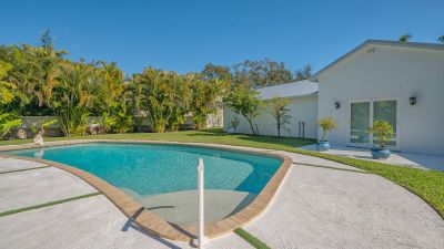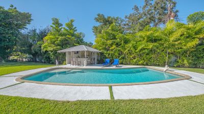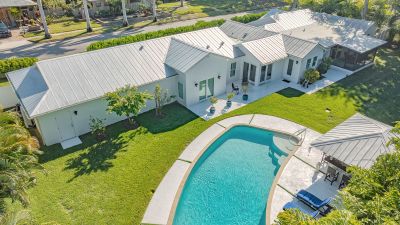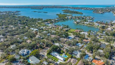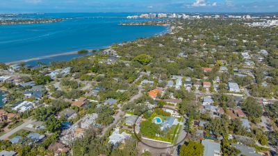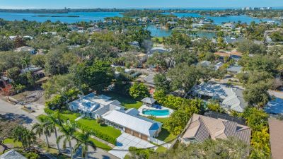 A rare and extraordinary offering, this is the home everyone has been waiting for. Rebuilt from the ground up between 2021-2024, this stunning farmhouse-coastal estate blends timeless charm with modern luxury on a beautifully landscaped .45-acre lot, providing one of the largest under grass rear yards west of trail in the exclusive Granada neighborhood, ideal for a entertaining and added privacy. No expense was spared and no detail overlooked in this fully reimagined residence, truly a "1939 meets 2025" masterpiece in one of Sarasota's most coveted locations. From the metal roof, hurricane-rated windows and doors, spray-foam insulation, dual A/C and heating systems (3-ton and 5-ton), and buried utilities, to the oversized 3-car garage and full irrigation well system, this home was designed for both beauty and long-term performance. Inside, you'll find oak-grain wood flooring, porcelain tile, custom cabinetry throughout, plantation shutters on every window, and a gorgeous chef's kitchen featuring an oversized island, farmhouse sink, granite countertops, GE Profile stainless appliances, dual ovens, wine cooler, and more. The thoughtfully designed split floor plan offers three full bathrooms, pocket doors for privacy, and a luxurious primary suite with oversized his-and-hers walk-in closets. Sliders and windows open to the resort-style pool area from three separate rooms, the primary suite, cabana, and dining area creating seamless indoor/outdoor living. The pool has been completely updated with a new surface, tile, coping, pump, filtration, and heater. Outdoors, enjoy a screened porch with pecky cypress ceilings, dusk-to-dawn and motion lighting, and breathtaking, mature landscaping including fruit trees, fishtail palms, pitch apple hedge, and an approximately 80-year-old banyan tree, all supported by over 18,500 square feet of lush, irrigated grounds, an increasingly rare find in this west-of-trail setting. Perfectly positioned just minutes to downtown Sarasota, Sarasota Memorial Hospital, Southside Village, and the world-famous sands of Siesta Key Beach, this location offers both convenience and prestige, quiet neighborhood living with immediate access to dining, shopping, healthcare, and coastal lifestyle amenities. This is not a remodel, this is essentially a brand-new custom home wrapped in classic charm. A true Granada neighborhood showpiece, offering the character everyone loves, the space that's nearly impossible to find today, and the peace of mind of modern construction. Homes like this simply do not come along often.