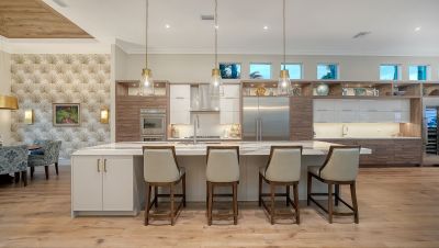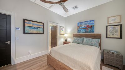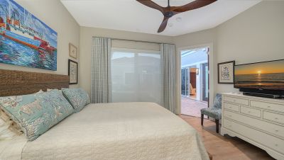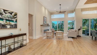 Situated within the gated Queens Harbour enclave of Bay Isles, this thoughtfully updated four-bedroom courtyard residence offers a refined blend of privacy, comfort, and waterfront living on Longboat Key. Designed around a lush central courtyard, the home creates an effortless indoor-outdoor flow anchored by a resurfaced swimming pool and new paver deck--an inviting retreat for everyday living or entertaining.A private cabana suite with its own entrance provides flexibility for guests or extended stays, enhancing the home's functionality while maintaining separation from the main living areas. Entry begins through custom mahogany and glass double doors, opening to a reimagined open-concept interior with soaring 14-foot ceilings, wide-plank wood flooring, and carefully curated architectural detail throughout.The great room is centered around a travertine-encased electric fireplace and framed by walls of windows and glass sliders that capture tranquil lake views and abundant natural light. This space flows seamlessly into the formal dining area, highlighted by a statement chandelier and tongue-and-groove tray ceiling, and continues into the chef's kitchen--designed as the heart of the home.The kitchen features a dramatic 14-foot quartz-topped island, custom designer cabinetry by Sarasota Architectural Woodworking, and newer Thermador appliances, including a five-burner gas cooktop, dual built-in ovens, pull-out pantry cabinetry, and a 48-inch stainless sink. Adjacent informal dining and family spaces include aquarium-style glass windows and an oversized wet bar with a full-size wine cooler capable of storing over 100 bottles.The primary suite, located on the main level, offers a peaceful lakefront setting with French-door access to the patio, custom built-in storage, and a walk-in closet. The spa-inspired bath was recently updated with dual quartz-topped walnut vanities, soaking tub, glass-and-stone shower, and private water closet. Also on the first floor are a versatile study overlooking the courtyard and a bonus room with an attached full bath that can serve as an additional bedroom or media space. The second level is dedicated to a private en-suite guest bedroom.Queens Harbour residents enjoy access to a heated Olympic-size pool and spa, along with deeded entry to the private Bay Isles Beach Club. Beyond the gates, Longboat Key's lifestyle amenities are just minutes away, including the Longboat Key Club's golf and tennis facilities, marinas, dining, and everyday conveniences. St. Armands Circle and downtown Sarasota's cultural attractions--shopping, galleries, theaters, and waterfront dining--are easily accessible, completing the appeal of this well-positioned coastal residence.