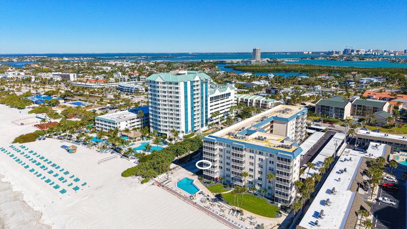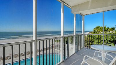 Experience beachfront living in this rarely available northwest corner residence at Lido Ambassador. This 3rd floor end-unit offers unparalleled panoramic views of the Gulf and beach, creating an extraordinary backdrop from every main living space. The residence features two bedrooms and two bathrooms encompassing 1,350 sq. ft. of interior living space complemented by a wraparound screened balcony that seamlessly blends indoor and outdoor living. Natural light fills the home, showcasing an open-concept layout that transitions from the entry area into the spacious great room overlooking the beachfront balcony. This thoughtful design is perfect for both entertaining guests and enjoying peaceful evenings at home, with endless beach views. The kitchen features Corian countertops, light colored cabinetry, generous storage all anchored by a trey ceiling. The primary suite offers a walk-in closet and an en-suite bath, while the guest bedroom and bath provide a private retreat for visitors. Lido Ambassador is a well-managed community known for its maintained grounds and attentive upkeep. Residents enjoy access to a Gulf-front pool and sun deck, which is currently undergoing a full renovation, to create a refreshed, resort-style atmosphere. And for added peace of mind, the roof of the building is brand new. Additional amenities include a fitness center, catering kitchen, outdoor grills, private storage, and one assigned covered parking space. The location is simply phenomenal. Nestled on the exclusive south end of Lido Key, the residence is steps from the Lido Beach Resort Tiki Bar and short distance from St. Armands Circle, Longboat Key, and with easy access to downtown Sarasota's arts and culture scene including the weekly farmer's market. Whether you are seeking a coastal getaway, investment opportunity, or full-time residence, this unit delivers exceptional location, and breathtaking views.