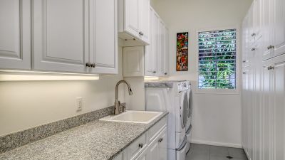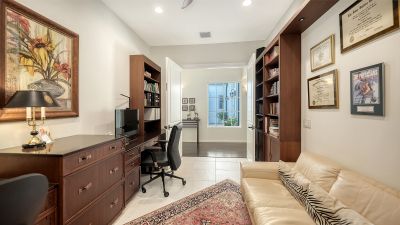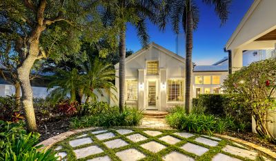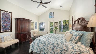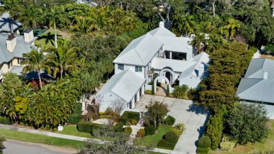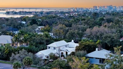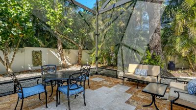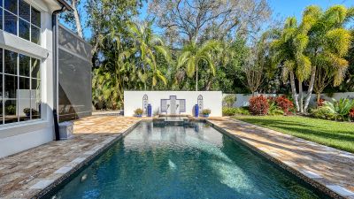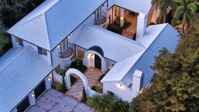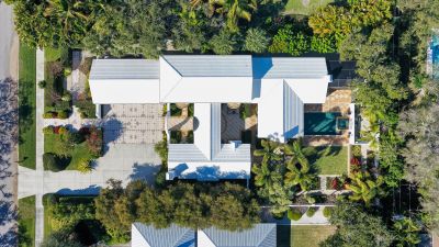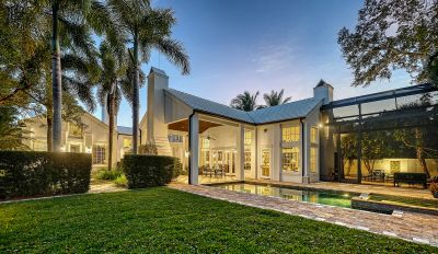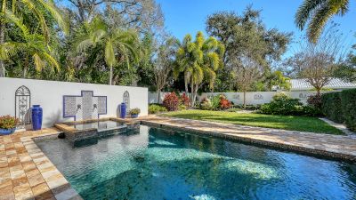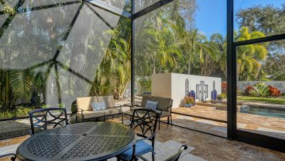 Recipient of eleven awards, including Residential Design and Build Design Excellence and Home of the Year by SRQ Magazine, this exceptional residence is the result of a thoughtful collaboration between Jonathan Parks Architect and Michael A. Gilkey Inc landscape designer. Located in one of Sarasota's oldest and most established neighborhoods, the home seamlessly blends a traditional 1920s architectural vocabulary with a modern appreciation for simplicity and precision. The result is a sophisticated four-bedroom residence with a British Colonial sensibility--elegant, timeless, and thoughtfully designed for today's lifestyle. Set on an unusually large 20,000-square-foot lot and located outside of any flood zone, the property offers a rare sense of space and privacy. An artistic pool and a series of designated outdoor living areas, framed by curated garden vignettes, complete this tranquil retreat. The striking foyer welcomes you with understated elegance, gleaming wood floors, and an immediate sense of refinement. Walls of glass define the main living spaces, filling the interior with natural light and highlighting the fireplace as a focal point. While the classic elements of a traditional home remain--stucco exterior, white roof, and ironwork details--the overall aesthetic is contemporary and quietly confident. Large windows and an open floor plan are designed to maximize light and create a seamless connection to the outdoors. A spacious screened patio offers an inviting setting for both relaxation and al fresco dining. Mature Mahoe trees, native to South Africa, line the exterior and rise gracefully to the level of the home's high windows, enhancing privacy and serenity. The primary suite occupies its own private wing on the first floor, complete with a secluded courtyard, while an ensuite guest bedroom and office balance the opposite wing. Upstairs, two additional ensuite bedrooms each enjoy private balconies overlooking the lush grounds. Throughout the home, a Zen-like sense of peace and tranquility prevails--a true sanctuary of thoughtful design and quiet luxury.