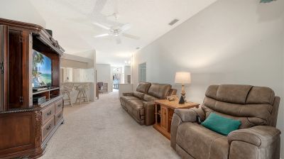 Located in the highly desirable Southwood maintenance-free community, this is a well-maintained 2-bedroom home with a split floor plan and high ceilings throughout. The spacious family room features a wall of sliding glass doors that open to a large, private lanai--perfect for relaxing or entertaining. The kitchen is designed with functionality in mind, offering abundant cabinetry, generous counter space, a large pantry, and a roomy eat-in area. A separate formal dining area provides additional space for gatherings. The primary suite includes high ceilings, a ceiling fan, walk-in closet, dual sinks, a private water closet and a large walk-in shower. The split-bedroom layout ensures privacy for guests. Additional highlights include hurricane-impact windows and an inside laundry room. The tile roof was replaced in 2014. - - - Southwood offers a low-maintenance lifestyle with ground maintenance and irrigation included in the low HOA fee. Residents enjoy access to a heated community pool that is close by. There are no CDD fees, and the property is not located in a flood zone, so mandatory flood insurance is not required. - - - Ideally situated in Venice, just minutes from shopping, dining, Wellen Park, CoolToday Park (spring training home of the Atlanta Braves), historic downtown Venice, the Legacy Trail, beautiful Gulf beaches, boating, fishing, and golf. A wonderful opportunity to enjoy easy Florida living in a prime location.