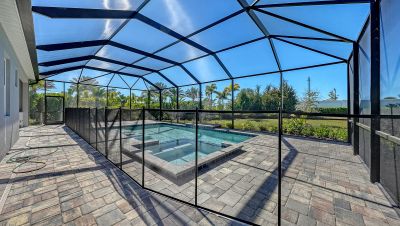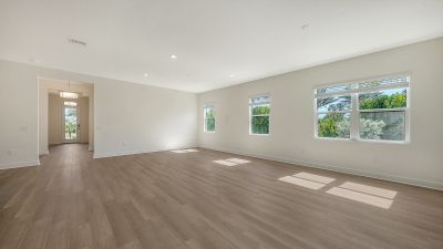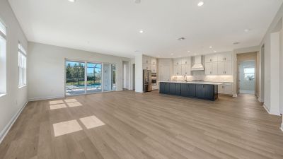 Step into The Shoreline, a beautifully designed open floor plan that blends comfort, luxury, and functionality. The spacious great room opens seamlessly to the pool and spa area through stunning impact-resistant sliding glass doors, creating the perfect indoor-outdoor living experience. A convenient pool bath is located near the master suite and great room. The home includes a chef's kitchen with a large butler's pantry and corner pantry for extra storage, plus a utility room door leading directly to the owner's closet and bedroom. Situated on a corner homesite with lush landscaping and a privacy wall, this home offers exceptional privacy and is located near the entrance for quick access to Downtown Wellen Park.