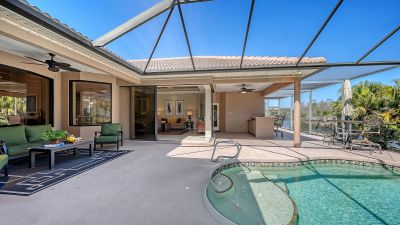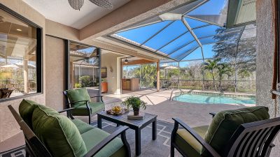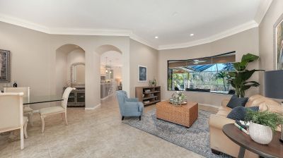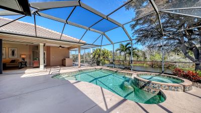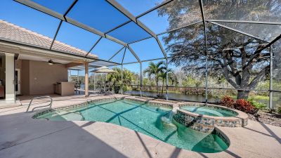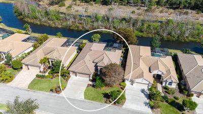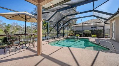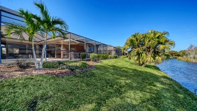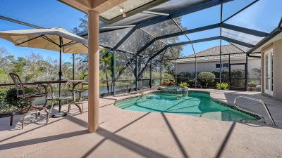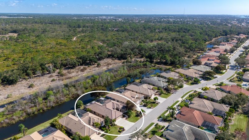 It's always about the view and the new tile roof December 2025. This stunning waterfront home in Willowbend, bordering community greenbelt with views to Oscar Scherer State Park, is a luxurious Lee Wetherington-built Paloma floorplan designed to the highest standards, offering spectacular views and seamless indoor-outdoor living. On one of the community's most desirable lots, it features unobstructed shimmering views of a wide lake and the natural beauty of the park, creating an extraordinary backdrop for an exceptional lifestyle. The idyllic setting includes a sparkling heated pool and spa. Summer kitchen has sink and stainless beverage refrigerator with large bar entertaining area. The exterior boasts a three-car garage and a double-door that welcomes you into an inviting, spacious interior. The home's open floor plan includes living/dining with views to the natural beauty, tile on diagonal, crown molding and vaulted ceilings. Handsome office/den to the front of residence. The gourmet kitchen is equipped with granite countertops, stainless steel appliances, including built-in gas range and custom hood. Large walk-in pantry with oversized adjacent laundry room that has an additional deep closet. Dinette area features an aquarium window to take in the natural beauty. Family room is spacious with a corner pocket door that opens wide to let in Florida's finest weather. The primary suite offers bamboo wood floors, double-tray ceiling and sitting area with French doors. California-style walk-in closets and a luxurious bath with dual sinks, a tub, walk-in shower and separate toilet. Each guest bedroom is generous in size with full bath in between. Additionally, it is a bonus living space with wood floors overlooking the serene setting. Third bath serves as pool bath. On a practical note, new water heater in 2026 and pool pump in December 2025. An amazing lifestyle awaits, all overlooking serene waterfront views teeming with wildlife such as eagles, osprey, otters, turtles and deer. The home is ideally near downtown Venice, Sarasota, Siesta Key, Nokomis Beach and Legacy Trail, offering easy access to cultural attractions, shopping, dining and recreational activities. Short distance to nationally ranked Pine View School. The community's low fees include internet, Direct TV streaming, yard maintenance, irrigation, pool and spa, gym and pickleball, making this a harmony of luxury, comfort and stunning beauty.