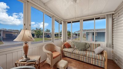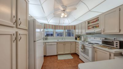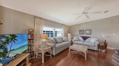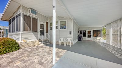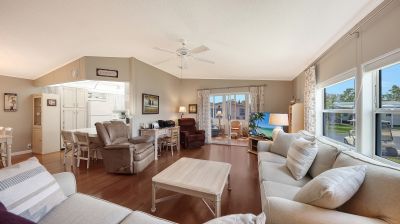 Highly sought after Gold Tree Co-op with over 295 homes is a 5 Star, over 55+ community. Light and Bright, this 2 Bedroom, 2 Bath home beams with pride of ownership. Immaculately clean, open and spacious and turnkey furnished. Engineered hardwood floors in the Living Room, Dining Room, Bedrooms and Hallway. Ceramic tile in the rest of the home, Kitchen, Bathrooms, Laundry and Florida Room. Formal Living Room and separate Dining Room, great for entertaining or just relaxing at home. Windows galore with plenty of natural light in the spacious Southern facing Kitchen. Newer appliances with a Breakfast Bar to Boot. Primary Bedroom has a walk-in closet, spacious En-Suite Bath with walk-in shower. Not one but two Florida Rooms for your relaxing pleasure. Separate inside Laundry Room with newer Washer and Dryer are included. All maintenance and updating/remodeling have been completed. From the membrane Roof (Lifetime Warranty), all polybutylene pipes were removed from home and replaced with PVC along with a new hot water heater in 2024. Crawl space, vapor barrier and 16 new tie downs inspected and installed March 2026. Brick Paver Golf Cart Driveway/Parking Pad 2010. Separate Shed behind Carport has plenty of space for storage and includes a Handyman's Dream Work Bench. Never a dull moment with the amenities and activities held at the remodeled Clubhouse/ Rec Center, heated pool & Spa, Tennis, Pickleball and Shuffleboard courts. All for a low monthly fee. Convenient location close to the UTC Mall, Benderson Rowing Venue, Sarasota Airport and local Beaches.