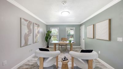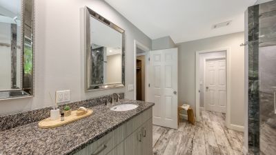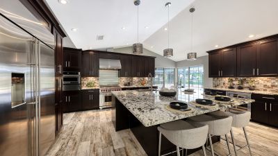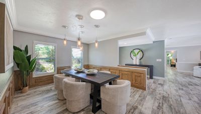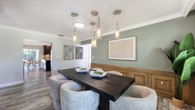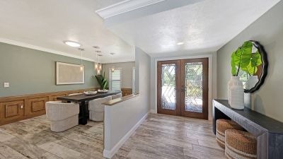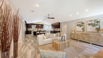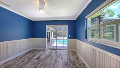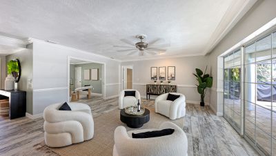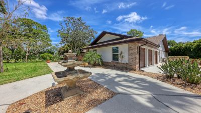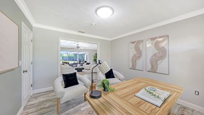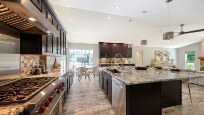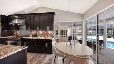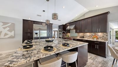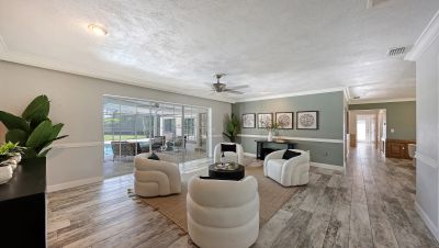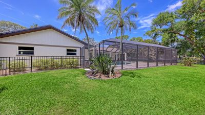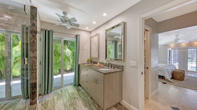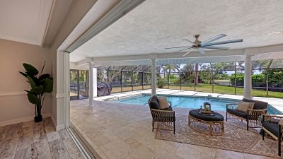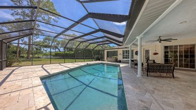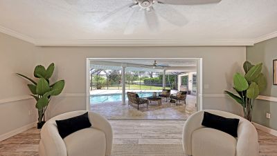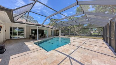 One or more photo(s) has been virtually staged. Rare opportunity in Broadmoor Pines at Palm Aire Country Club. This beautifully renovated home sits on over of an acre at the end of a quiet cul-de-sac offering privacy, mature landscaping, and long water views with the 4th hole of the Lakes Course in the distance. Set deep off the road, this winding driveway and lush setting creates a striking arrival. New roof May 2025. Impact windows and a 3 car garage. The home is designed for comfortable everyday living and effortless entertaining, with porcelain plank tile flooring, crown molding, recessed lighting, upgraded ceiling fans and Hunter Douglas window treatments throughout. Gorgeous glass front doors open to formal living and dining spaces, while the open kitchen and family room form the heart of the home. The chef's kitchen features premium appliances: Wolf dual-fuel 6-burner gas/convection range, GE Monogram refrigerator/freezer, KitchenAid built-in microwave, Bosch dishwasher, and Uline two-zone wine cooler. Custom dovetail cabinetry with pull-outs, pull-out pantry storage, granite countertops, mosaic tile backsplash, and under-cabinet lighting provide both style and functionality. A large dining island anchors the space and opens to an expansive family room with vaulted ceilings and a stone gas fireplace. The split-bedroom floor plan provides excellent privacy. The primary suite includes travertine flooring, plantation shutters, sliding doors to the lanai, and two custom walk-in closets. The updated bath offers dual granite vanities and a large walk-in shower with frameless glass and multiple shower heads, including dual rain showers. A flexible den with pocket doors and a closet can serve as a fourth bedroom, with access to a nearby half bath. The guest wing, tucked behind a pocket door, includes two spacious bedrooms and a full bath with direct pool access. This outdoor living is exceptional with a re-surfaced (heated) saltwater pool, travertine pavers, expansive covered bronze screened lanai, and fully fenced backyard. Located just 15 minutes from downtown Sarasota, Lido Beach, and Sarasota-Bradenton International Airport. Palm Aire Country Club offers 36 holes of golf with optional membership, plus tennis, pickleball, fitness, pools, and an active social calendar.