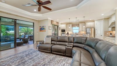 Experience refined living in this lightly lived-in and impeccably maintained three-bedroom, three-bath residence, ideally situated in the highly sought-after Esplanade Golf & Country Club. Offered well below its 2023 purchase price, this home presents an exceptional opportunity and outstanding value.Designed with comfort, security, and peace of mind in mind, it stands apart with Category 5 hurricane-rated windows, a whole-house generator connected to natural gas, a front storm door, roll-down hurricane shutters, a drainage improvement system, water treatment, and enhanced smoke detection. Every detail reflects meticulous care and pride of ownership.The thoughtfully designed Lazio floor plan strikes a perfect balance between everyday ease and effortless entertaining, blending open gathering spaces with private retreats. The chef-inspired kitchen boasts a spacious gleaming island, deep-volume cabinetry with pull-out drawers, a bright window over the sink, three designer pendant lights, and a walk-in corner pantry--ideal for hosting guests or enjoying casual family meals.The primary suite serves as a serene retreat, featuring a custom-built walk-in closet complete with drawers, jewelry storage, and a secure floor-mounted safe. Two additional bedrooms, each with their own private bath, plus a versatile den or office, offer comfort and flexibility for any lifestyle. Additional features include recessed lighting throughout, a newer HVAC system, and a mini-split A/C unit for personalized climate control in the primary suite.Step outside to the extended, covered, and screened lanai--an inviting outdoor living space designed for year-round enjoyment. Relax at the granite summer kitchen bar, unwind in the hot tub, or take in the lush, landscaped garden wall offering both beauty and privacy. Motorized storm and privacy shades provide an extra layer of comfort and security.Discover the pinnacle of resort-style living at Esplanade in Lakewood Ranch, where every day feels like a getaway. This vibrant, amenity-rich community features beautifully landscaped grounds, scenic walking trails, and a world-class array of activities. Residents enjoy access to a championship golf course, full-service spa, tennis and pickleball courts, and an elegant clubhouse offering fine dining and social events. Whether lounging by the resort pool or gathering with friends for a sunset cocktail, Esplanade offers the perfect blend of luxury, leisure, and connection in the heart of Lakewood Ranch.
