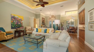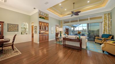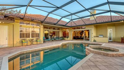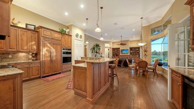 Set on a serene cul-de-sac within the prestigious Laurel Oak Estates, this custom-built residence captures the essence of Sarasota's coveted golf-course lifestyle. Poised on nearly an acre with sweeping fairway and lake views, the home offers more than 5,100 square feet of beautifully designed living space enhanced by timeless architectural detail, modern functionality, and effortless indoor-outdoor flow.A private winding drive and manicured landscaping introduce the stately faade, where double entry doors open to a grand foyer with high ceilings and walls of large windows that fill the interiors with natural light. The spacious living and dining areas feature custom built-ins and millwork, with expansive sliders framing sunset views of the sparkling pool and golf course beyond. Perfect for entertaining, the gourmet kitchen combines rich wood cabinetry with granite countertops, a large center island, double ovens, built-in refrigerator, wet bar area, and casual dining nook overlooking the fairway. The adjoining family room offers a warm gathering space anchored by solid wood built-ins and a gas fireplace, with seamless access to the screened lanai for alfresco living.The primary suite is a private retreat with peaceful golf and water views, two custom walk-in closets, and a spa-inspired bath complete with soaking tub, separate shower, dual vanities, and private water closet. Three additional guest suites provide generous accommodations--two sharing a Jack-and-Jill layout, and one with a full en-suite bath--each thoughtfully designed for comfort and privacy. The theater room is equipped with platform seating, custom cabinetry, 120" screen, surround sound, remote-controlled lighting, and 4K projector. A true highlight of the home is the second-floor bonus suite, currently used as an art studio, featuring vaulted tongue-and-groove ceiling, built-in desks, a full bathroom, and an expansive balcony capturing unforgettable sunset vistas across the course.The screened outdoor living area defines the Florida lifestyle, showcasing a heated pool and spa, outdoor kitchen, and multiple seating areas for relaxing or entertaining. Mature landscaping, accent lighting, and the home's ideal southwest exposure create a tranquil backdrop year-round. Additional features include plantation shutters, central vacuum, a three-car side-entry garage with golf-cart parking, and a whole-house solar system offering efficiency and peace of mind.Nestled behind the gates of Laurel Oak Country Club, residents enjoy access to 36 championship holes of golf, tennis and pickleball courts, a junior Olympic pool, fitness facilities, and a vibrant social calendar--all available with optional membership. Beyond the gates, you're moments from Sarasota's best amenities, including UTC Mall's upscale shopping and dining, Nathan Benderson Park, and downtown Sarasota's world-class arts, culture, and waterfront entertainment. Siesta Key and Lido Key beaches are within easy reach, completing the perfect blend of privacy, luxury, and convenience.With its exquisite craftsmanship, prime location, and inspiring golf-course vistas, this Laurel Oak Estates residence delivers the ideal balance of sophistication and relaxed Sarasota living--an exceptional opportunity for those seeking elegance within one of the region's most prestigious gated communities.