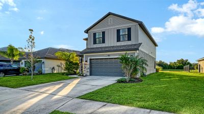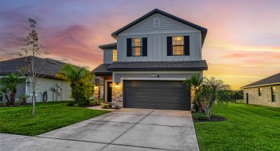 Experience stunning sunset views from your private back patio! This meticulously maintained 2022 home, nestled on a conservation lot in Aviary at Rutland Ranch, offers serene preserve and pond vistas teeming with Florida's diverse wildlife and abundance of Florida birds. Enjoy the perfect blend of modern convenience and tranquil living, with easy access to I-75, US 301, and I-275, yet surrounded by the peace and natural beauty of wild Florida.This spacious home welcomes you with abundant natural light, seamlessly blending open living and dining areas with a beautiful kitchen featuring granite countertops, stainless steel appliances, a large pantry, and a convenient half bath. The expansive center island is ideal for hosting family and friends. Upstairs, discover four well-appointed bedrooms, including a primary suite with a generous walk-in closet and a luxurious spa-inspired bathroom, plus a dedicated laundry room for added convenience.Equipped with a built-in pest control system and reclaimed water irrigation, this home is as practical as it is beautiful. The vibrant Aviary at Rutland Ranch community offers resort-style amenities, including a sparkling pool, playground, pickleball courts, cabana, and scenic nature trails. Located in a thriving area with new shops, restaurants, and top-rated schools, this home is the perfect haven for your family's next chapter. Schedule your tour today!