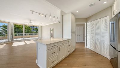 Perfectly positioned within the sought-after Grand Bay community, this Aruba residence blends convenient design, refined comfort, and a premier Longboat Key lifestyle. Overlooking Sarasota Bay, the golf course, and the downtown skyline, this two-bedroom home offers a combination of privacy, panoramic vistas, and recent designer enhancements.Set behind the gates of Bay Isles, this corner residence is bathed in natural light from expansive floor-to-ceiling glass doors and windows. The open great room serves as the heart of the home, offering a flexible space for entertaining and relaxing, framed by captivating views of the bay and city beyond. A wraparound balcony extends the living area outdoors, ideal for morning coffee, al fresco dining, or evening sunsets.The 2025 kitchen renovation introduced a complete reimagining of this important space--featuring custom cabinetry, removal of overhead soffits for added height and openness, upgraded plumbing, new LED and under-cabinet lighting, and all-new hardwood flooring carried throughout the residence. The modernized kitchen blends timeless finishes with functional elegance, offering ample workspace and stylish appeal for both everyday use and entertaining.The primary suite is a tranquil retreat, capturing water views and featuring an en-suite bath with dual sinks, a soaking tub, and a separate walk-in shower. A spacious walk-in closet provides exceptional storage. The guest bedroom doubles as an office or den and includes built-in storage and a Murphy bed, allowing effortless flexibility for visiting guests. Additional features also include two under-building parking spaces and a private storage locker.Within the secure and beautifully maintained Grand Bay community, residents enjoy an array of luxury amenities, including two resort-style swimming pools and spas, fully equipped fitness center, and clubhouse, tennis courts and pickleball, 24-hour guarded gate entry and on-site management. Grand Bay's location behind the Bay Isles gates grants owners private beach access to the Gulf of Mexico through the Bay Isles Beach Club. The Longboat Key Club golf course and marina are nearby, offering exceptional recreation options.Beyond the gates, you're moments from St. Armands Circle's boutiques and fine dining, the vibrant arts and theater scene of downtown Sarasota, and world-renowned beaches along Longboat and Lido Key. Whether you're seeking a seasonal escape or a year-round residence, this Grand Bay condominium captures the essence of coastal sophistication--where modern updates meet the serenity of bayfront living.