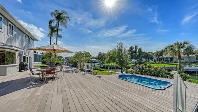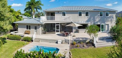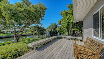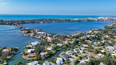 Nestled within the secure, mainland West-of-Trail enclave of Coral Cove, this elevated 2-story waterfront residence offers refined coastal living on a generous 17,000+ square-foot canal-front homesite with direct access to the Intracoastal Waterway. Positioned in an X flood zone and exhibiting exceptional resilience, the property sustained no storm impact and features a standing-seam metal roof, mature landscaping, and a well servicing the irrigation system. A brick-paver circular drive introduces a striking double-door entrance, opening to a light-filled interior defined by soaring volume ceilings, clerestory windows, and an airy, sun-washed ambiance. The welcoming foyer flows into a spacious living and dining composition designed for both intimate and large gatherings. At the heart of the home, the centrally placed kitchen features expansive sightlines, abundant cabinetry, and a seamless aquarium-glass breakfast retreat overlooking tranquil water vistas. Adjacent, a large 21x24 family room with bar, wine refrigerator, sink and fireplace extends effortlessly outdoors, creating a harmonious connection between interior comfort and open-air relaxation. The main living level has a second main bedroom plus 2 guest rooms. One bedroom is currently designed as a study. A stairway ascends to an open gallery walkway leading to an extraordinary 25x18 owner's sanctuary. This upper-level retreat showcases a spa-inspired bath, custom-tailored walk-in wardrobe, plus a dedicated exercise studio or nursery. Enjoy private access to an upper sun deck overlooking the water. Outdoor living is truly exceptional, with an expansive entertainment environment featuring a swim-spa, screened lounging deck, additional open-air terrace, and fully fenced backyard ideal for pets or play. The Trex dock is engineered to accommodate a large boat, offering easy access to the bay and beyond. Coral Cove residents enjoy exclusive use of a private two-acre waterfront park and community boat ramp, fostering a close-knit, serene atmosphere. Peaceful surroundings pair beautifully with remarkable convenience to shopping, dining, and cultural attractions, while the powder-white sands of Siesta Key Beach--ranked the nation's finest--are just minutes away. A rare blend of security, scale, natural light, and waterfront sophistication, this Coral Cove offering delivers an elevated coastal lifestyle without compromise.