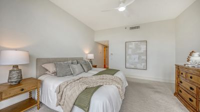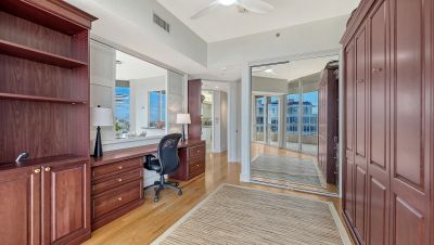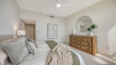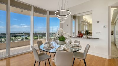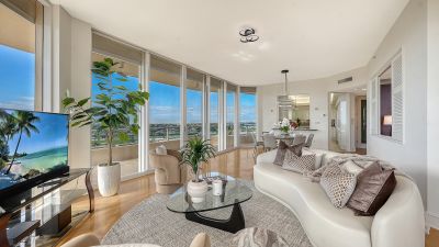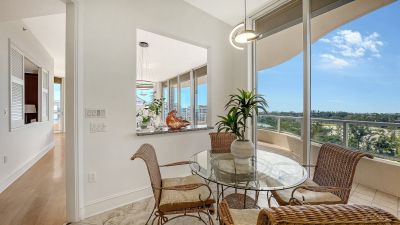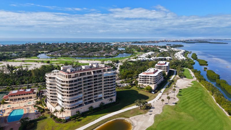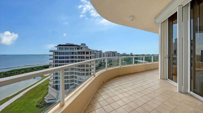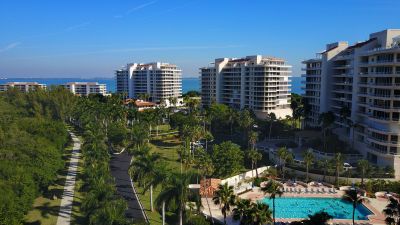 One or more photo(s) has been virtually staged. Positioned high on the south side and 9th floor of Building One, this turnkey-furnished residence at Grand Bay offers expansive Sarasota Bay, golf course and downtown views, refined interiors, and effortless resort living on Longboat Key. Spanning nearly 2,300 square feet, the open layout is framed by walls of glass and a wraparound terrace with access from nearly every room--creating a seamless connection between indoor spaces and the ever-changing water views below.Recently refreshed with new contemporary furnishings included, the residence is truly move-in ready. The spacious great room flows naturally into the dining area and kitchen, creating an inviting setting for entertaining or relaxed daily living. Floor-to-ceiling glass sliders bring in abundant natural light while showcasing views of the bay, marina, and downtown Sarasota.The primary suite is a private retreat with terrace access, generous closet space, and a well-appointed en-suite bath. Two additional bedrooms provide flexibility for guests, office use, or extended stays, each positioned to enjoy natural light and views. Electric storm shutters throughout offer convenience and peace of mind.This residence includes two deeded parking spaces and an additional storage unit, a valuable combination rarely available at this elevation.Grand Bay is one of Longboat Key's most sought-after gated communities, offering residents a full suite of resort-style amenities including two heated swimming pools with sundecks, Har-Tru tennis courts, a modern fitness center, clubhouse, and an active social calendar. On-site management and 24-hour security ensure a well-maintained, secure environment. As an exclusive benefit, owners enjoy deeded access to the private Bay Isles Beach Club, where Gulf-front pavilions, grilling areas, and pristine shoreline create the perfect setting for beach days and sunset gatherings.Located behind the gates of Bay Isles, Grand Bay balances privacy with proximity. Just minutes away are the boutiques and restaurants of St. Armands Circle, the cultural offerings of downtown Sarasota, championship golf and marina access at Harbourside, and the beaches of Lido and Siesta Key. From boating and tennis to theater, dining, and art, this residence places the best of Sarasota living within easy reach.A rare opportunity to enjoy turnkey bayfront living in one of Longboat Key's premier communities.