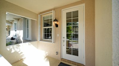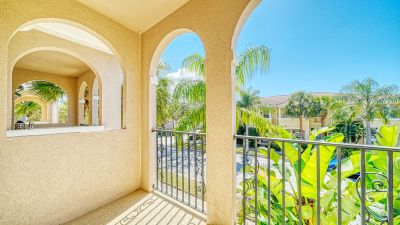 Welcome to San Palermo in Sarasota! This is a coveted DiVosta poured concrete prized community. That's right! Solid concrete poured walls for your comfort, quiet, and strength! Beautiful landscape surrounds everything with a tropical feel enveloping the communiy and the pool. This home offers a private gated entry, dramatic hardwood floors in the great room, a bright kitchen with neutral corian counters, and pocket doors to the laundry, guest bath, and back door. Primary bedroom upstairs is ensuite and includes an owner's private balcony, walk-in closet and even another closet. Bedroom 2 has walk-in closet with organizer and Bedroom 3 has a huge closet with organizer. Double linen closet upstairs. One-car garage complete with Tesla speedy E-Charger, Utility & storage Pantry off kitchen with Central Vacuum. Wired for security. Convenient Location minutes from UTC, loads of restaurants and activities, Benderson Rowing facility, Downtown Sarasota, St. Armands, Lido Beach, and easy access to I-75. Kitchen is also nicely equipped with new microwave (2026) and disposal (2026). Other recent updates include permanent hurricane shutters for storm preparedness ease (2025) Air handler (2018), Water Heater (2025) laundry appliances (2023) Smoke alarm (2025). Recent Exterior paint. This is THE ONE! Hurry today...Your personal touches will make this a dreamy home to enjoy with ease.