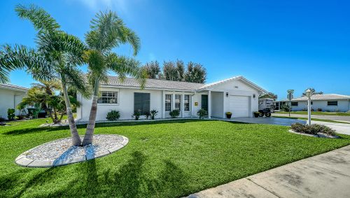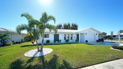 The Best of Both Worlds: A High-End Renovation with Ultra-Low HOA FeesDiscover a rare opportunity in River Isles--an amenity-rich, impeccably maintained 55+ community where the monthly HOA is an astonishing $60. This fully renovated home offers three true bedrooms, two full bathrooms, indoor laundry, and TWO garages--one for your vehicle plus a second rear-entry garage perfect for a golf cart, workshop, or extra storage. This home has been thoughtfully transformed with a high-specification renovation. At the heart of the reimagined open floor plan is a stunning designer kitchen featuring engineered stone countertops, well-appointed cabinetry with glass accent doors, in- and under-cabinet lighting, sleek stainless steel appliances, and exceptional storage and workspaces. Professional design touches flow throughout the home. Accent walls, a stylish fireplace, bar area, modern lighting, and fresh interior paint all work together to create a warm, contemporary feel. You'll also appreciate the ALL-NEW doors and hardware, baseboards and trim, flooring, window treatments, and updated bathroom fixtures. This is a renovation you must see to fully appreciate. Step outside and enjoy the Florida lifestyle on the expansive 32' x 14' concrete patio, framed by fresh landscaping and exterior paint. Whether you're basking in the sun or entertaining friends, this outdoor space is ready for year-round enjoyment. Feel secure in any weather: this home is NOT in a flood zone, and every window is protected with either metal roll-down shutters or clear hurricane panels. Move-in ready for year-round living, vacations, or the perfect winter retreat. River Isles offers an impressive list of amenities, including a clubhouse, heated pool, fitness center, library, billiards, and shuffleboard courts--all included in the low monthly fee. Golfers will love the opportunity to enjoy optional, affordable membership to the community's 9-hole executive golf course, or simply "pay-and-play" Ideally located, this well-run and established neighborhood provides quick access to I-75, downtown Bradenton and Sarasota, and the area's award-winning beaches, as well as abundant options for dining, shopping, entertainment, and healthcare. A beautifully renovated home in a vibrant, low-cost community--this is Florida living at its best. Schedule your private showing today.