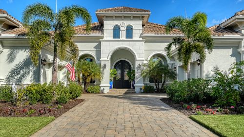 Exquisitely customized Stock Signature residence set on an expansive, ultra-private two-thirds acre homesite within the prestigious, guard-gated enclave of The Lake Club. Architecturally distinctive and masterfully curated, this 3-bedroom, 4.5-bath estate showcases exceptional craftsmanship, designer finishes, and an extensive collection of recent high-end upgrades. The resort-inspired grounds are newly landscaped and thoughtfully designed with aluminum fencing, specialty plantings, ambient landscape lighting, and a full irrigation system, offering a tranquil, secluded setting. Hurricane-impact windows and sliding doors, paired with a bespoke solid iron entry door, provide both refined elegance and superior security. The panoramic pool enclosure showcases the resort-style saltwater pool and spa, enhanced with caf lighting, programmable LED pool and spa illumination, and a fully appointed outdoor kitchen with beverage cooler and sink, creating an ideal environment for sophisticated alfresco entertaining.Interiors are defined by dramatic architectural ceiling treatments, custom millwork, designer chandeliers, rich crown molding, recessed lighting, and thoughtfully designed window treatments. The entire residence has been freshly repainted inside and out, presenting a pristine and flawless offering. The gourmet kitchen is a showpiece, featuring illuminated upper cabinetry, a striking smoked mirror glass backsplash, custom range hood, seamless one-piece granite island, updated sink and faucet, refined hardware, under-cabinet and pendant lighting, and newly refinished cabinetry. Living and entertaining spaces are enriched with custom crafted built-ins, tailored lighting, plantation shutters in the dining room, plush new carpeting in guest suites, and two private executive offices with custom cabinetry and French doors. The versatile bonus room offers elegant flexibility as a media room or additional guest suite. The sumptuous primary suite includes a reimagined, expanded couture closet with custom cabinetry, new carpeting, glass entry doors, and designer lighting. The spa-inspired primary bath boasts new quartz countertops, dual sinks, upgraded fixtures, illuminated custom mirrors, and artfully updated tile. A dramatic, designer powder room provides a striking statement of luxury. Notable enhancements include a whole-house water softener and filtration system, a whole-house Kohler generator and an epoxy floor coated 4-car garage!Residents of The Lake Club enjoy a world-class lifestyle with a grand clubhouse, fine dining and bar, two resort-style pools, state-of-the-art fitness center, Har-Tru tennis courts, pickleball, fishing, and scenic walking trails. Ideally positioned in Lakewood Ranch's most exclusive neighborhood, this exceptional estate is moments from premier shopping, dining, top-rated schools, and the Gulf Coast's renowned beaches.
