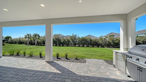 Under Construction. Stunning Heritage by Neal Communities in the premier community of Windward at Lakewood Ranch! This 2,428 sq. ft. home features 4 bedrooms, 2.5 baths, a den, and a 2-car garage. The open-concept floor plan showcases a designer kitchen with Timberlake Kinsdale White cabinets, Ethereal Glow quartz countertops, GE stainless steel appliances , and a modern tile backsplash. Wood-look tile flooring flows through the main living areas, leading to an extended covered lanai with a fully built-in outdoor kitchen, perfect for entertaining. The spacious owner's suite offers a luxurious bath with quartz countertops, a frameless shower, and upgraded tile. Additional features include impact windows, 8' interior doors, and upgraded lighting throughout. Windward residents enjoy resort-style amenities--two pools, pickleball, tennis, fitness center, and scenic trails.