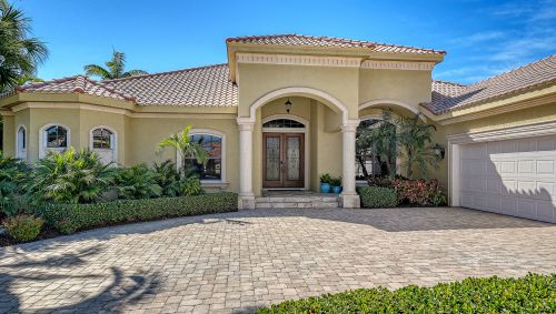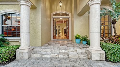 Stately custom residence located on a premier lakefront lot within The Enclave at Silver Oak, one of Palmer Ranch's popular communities. Originally built as a former model by Special Edition Custom Homes, the grand home reflects the highest quality of construction and architectural detail throughout. Welcoming covered entry with solid wood double doors and wrought iron open into soaring ceilings adorned with crown molding, rich trim work and tray and coffered ceiling designs. Large-format travertine stone flooring, 8-ft wood interior doors, custom-built closets in every bedroom, Hunter Douglas shades, and a surround sound system. Impressive open floor plan seamlessly connects elegant interior spaces with expansive outdoor living. Inviting living room with striking stone fireplace and built-ins and large French doors opening directly to the outdoor area. Entertaining is enhanced by a stylish wet bar, complete with beverage refrigerator, ice maker and custom wine cellar. A dedicated dining room is conveniently located adjacent to the living room and wet bar. Chef's gourmet kitchen showcases rich custom wood cabinetry with under-cabinet lighting, pull-out shelving/drawers, granite countertops, mosaic tile backsplash, and professional-grade KitchenAid appliances, including a six-burner gas range. Built-in planning center/desk, plus a breakfast nook with expansive aquarium window overlooking the pool and lake. The adjoining family room features floor-to-ceiling multi-panel sliding glass doors on 2 walls that open fully to the outdoors. Dedicated office with built-in desk system and powder bath for guests. The primary suite is a luxurious retreat with separate his-and-her custom closets and a spa-inspired bathroom with dual split vanities, ample granite counters and storage space, oversized soaking tub, large walk-in shower, and a private water closet with both a standard toilet and a standalone bidet. The split-bedroom floor plan ensures privacy, with two bedrooms sharing a Jack-and-Jill bathroom, along with two additional bedrooms (the 5th could be a flex/game room or 2nd office) and a full bath. A spacious laundry room provides direct access to the three-car side-entry garage with built-in storage. Outdoor living is exceptional, highlighted by a vanishing-edge pool with integrated spa and natural stone overflow, surrounded by expansive travertine decking. The fully equipped outdoor kitchen includes a gas grill, sink, and beverage refrigerator, while a large covered lounge area with custom-built stone fireplace creates the perfect setting for entertaining. Fully enclosed with a bronze screen and framed by lush Florida landscaping and serene lake views. Silver Oak is a 24-hour guard-gated community with no CDD fees and includes lawn maintenance. Ideally located in the heart of Palmer Ranch, just steps from the Legacy Trail and minutes from shopping, dining, golf, entertainment, and world-famous Siesta Key Beach. Please note, the structure is not in a flood zone, see notes from county and insurance company.